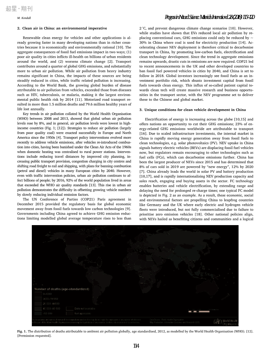 在2015年12月的联合国缔约方会议“巴黎协定”为全球经济从化石燃料转向低碳技术提供了监管基础[9]。各国政府(包括美国,中国)都同意控制温室气体排放,将全球平均气温上升幅度限制在低于2摄氏度内,以此防止危险的气候变化情况的产生[10]。然而,尽管研究表明,通过更换传统汽车来减少当地的空气污染,温室气体的排放只能减少部分。在中国,用煤炭的火力发电的占到了30%[14]。因此,通过推广低碳燃料,可再生清洁的部署对中国的碳排放减少至关重要, 因此必须发展清洁能源技术。由于总排放量的趋势仍然是在上升中,现在需要大幅度削减排放量。最近在英国和其他国家宣布了将在2018年禁止城市中使用化石燃料作为动力的汽车。全球投资者越来越多地将化石燃料视为投资组合中的一种风险,这确实是一种风险。从化石燃料到清洁能源的投资。这种所清洁技术将在运输部门产生大量的研究和商业前景。或者说,该计划的目的是向中国和全球市场提供这些清洁的产品。