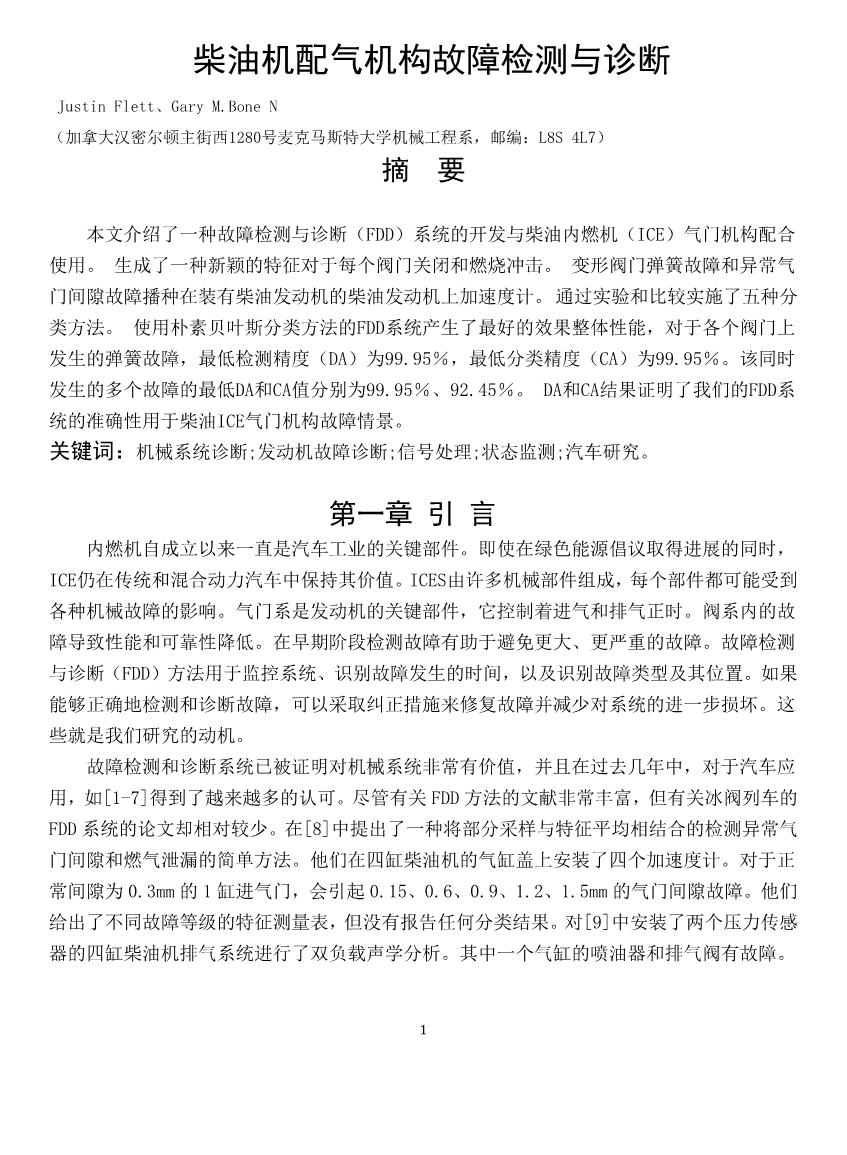 某型号柴油机检测及故障诊断方法探讨外文翻译资料