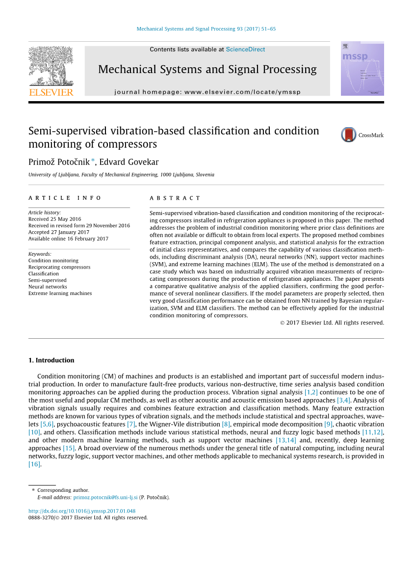 本文的主要工作如下:(1)提出了一种新的半监督方法,提出了往复式压缩机的工业状态监测方法;(2)解决了多种特征选择方法的独特结合,ii的统计提取,TiAl类代表,主成分分析,以及各种高级分类器的应用;(3)对各种先进分类器进行了广泛的定性比较分析。 关于有效的工业状态监测应用的分析方法(包括极端学习机器)。该方法与工业应用密切相关,并在一个由20,000台压缩机振动测量的案例研究中演示了在冰箱设备的工业生产过程中获得的振动测量结果。