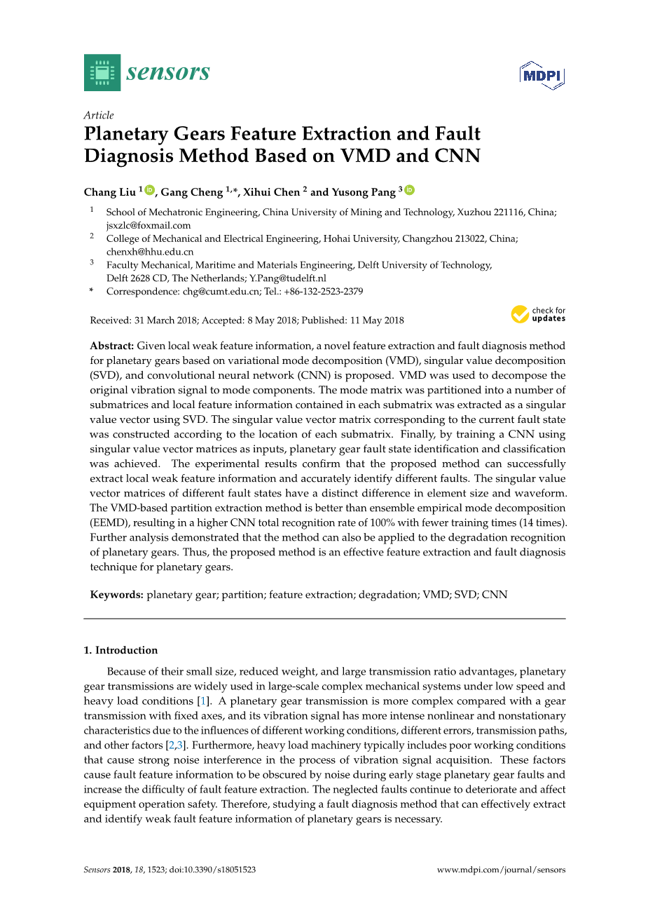 关键词:行星齿轮;分解;特征提取;退化;变分模态分解;奇异值分解;卷积神经网络