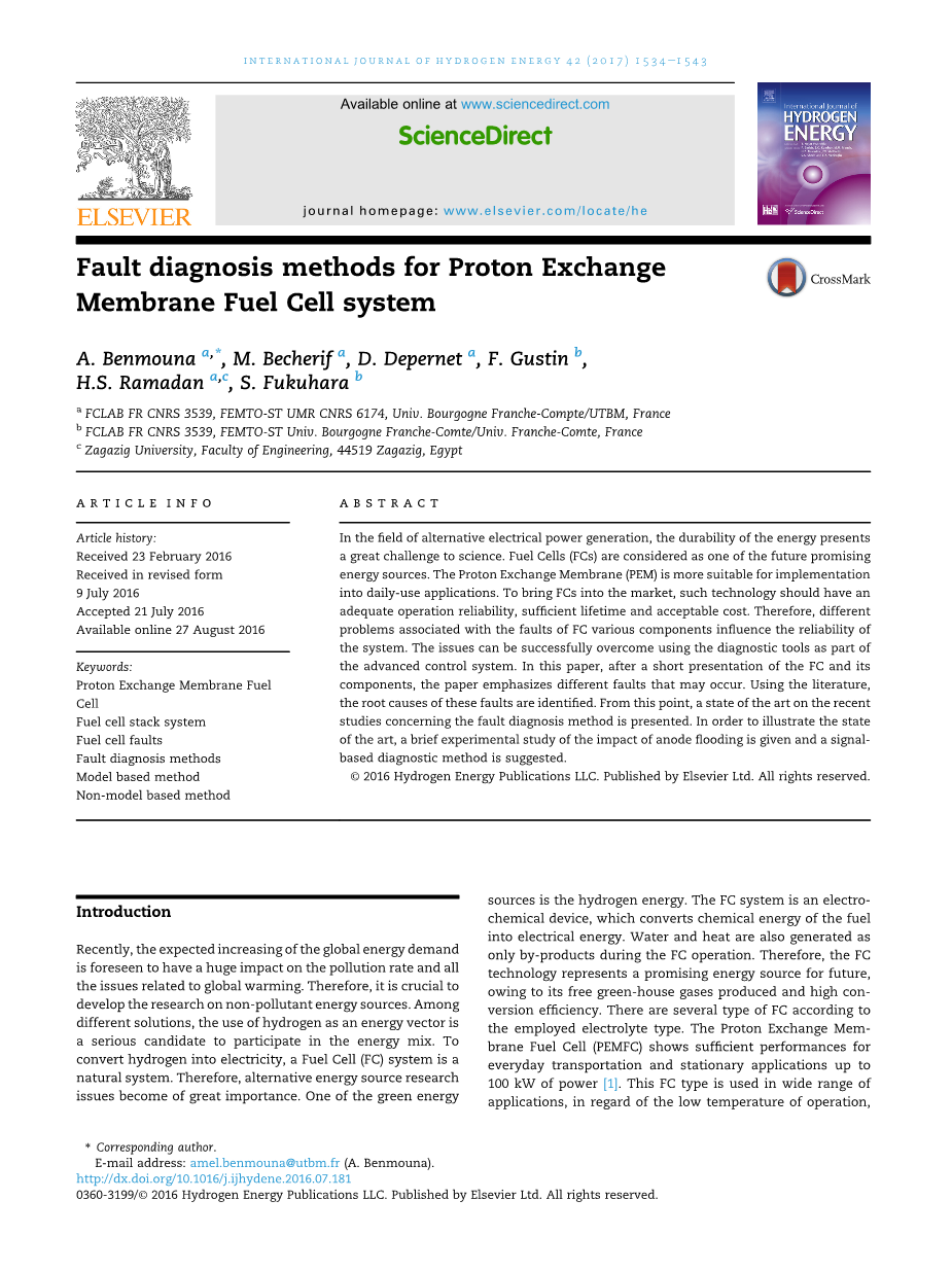 据美国研究[4],美国能源部已经宣布一组汽车应用程序要求达到5000 h FCs耐久性花费30美元/千瓦,和稳定的FC系统约60 000 80 000 - h持久性总花费约1000 - 1500美元/千瓦[4]。该技术在目前的必要性是为今后的研究方向铺平了道路,主要集中于FC故障的检测和相关的不同诊断方法,以保证其耐久性和不可逆性。这些故障必须及早发现,有时还需要估计和处理。因此,FCs很容易受到故障的影响,从而导致其停止或永久损坏。为了保证FC系统的安全运行,有必要采用系统参数技术进行故障检测和隔离。本文介绍了PEMFC断层诊断的各种方法的最新进展。由于PEMFC是影响该技术性能的关键技术,因此目前的研究重点是该技术的失效问题。在此基础上,对阳极室的水淹问题进行了实验研究。因此,测试台的实验显示,根据电压随时间的变化,预先考虑了阳极驱油的短期影响。在实验工作中,采用谐波含量差值作为检测泛洪故障的新方法。