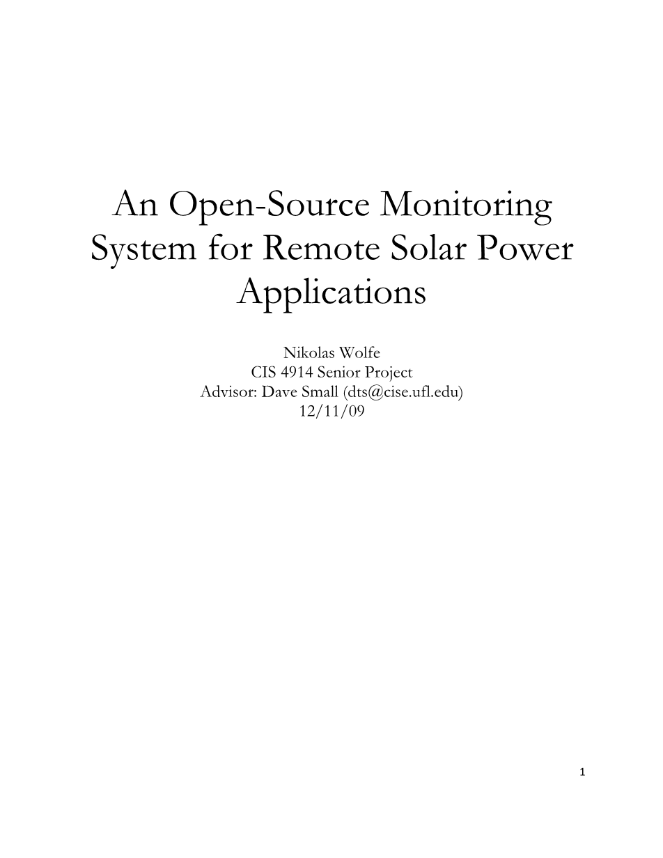 利用可再生能源系统发电是一种越来越流行的发电方式。与任何新的技术范例一样,已经出现了可再生能源系统的新的独特挑战。特别是其中的一项是开发有效的监测技术以补偿远程发电的分散性质。该项目详细介绍了远程太阳能系统的开源监控系统开发。该项目特别关注的问题空间涉及成本的降低和开放平台的使用使太阳能监测在发展中国家具有可行性,在这些发展中国家,实现这些项目的推进所需的资源和基础知识都特别稀缺。