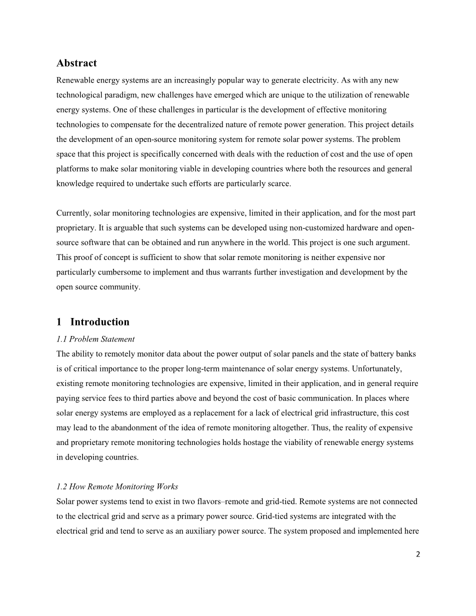 要向第三方支付高于基本通信成本的服务费。在太阳能系统被用来替代缺乏电网基础设施的地方,这种成本可能导致完全放弃远程监控的想法。因此,远程监控技术昂贵的费用和专有权的现实威胁了可再生能源系统在发展中国家的可行性。