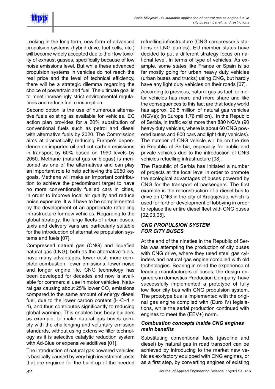 1990年代末,塞尔维亚共和国境内试图生产 CNG 驱动城市公共汽车, 他们使用的是符合旧有技术的钢制气瓶和天然气发动机。通过吸取领先客车制造商的经验, 国内厂商的设计师, 已经成功地实现了CNG动力低地板城市公交车原型车的生产。原型车与满足欧IV排放标准的天然气发动机一起被生产,同时也与满足 (EEV ) 规范的发动机一道投入量产。