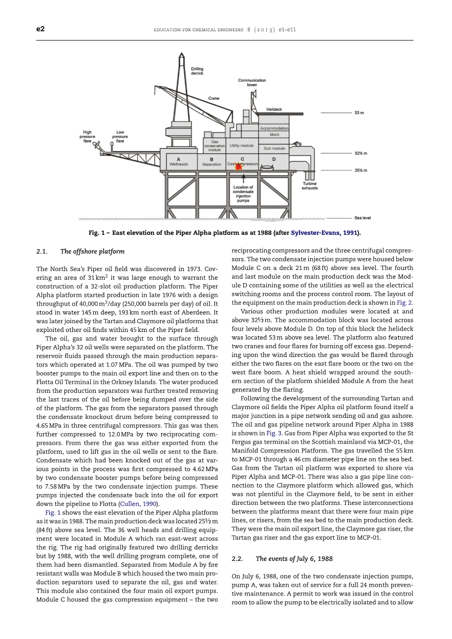 1988年Piper Alpha平台的事故是本研究中使用的案例。 在课堂上向学生们展示的主要元素如下。