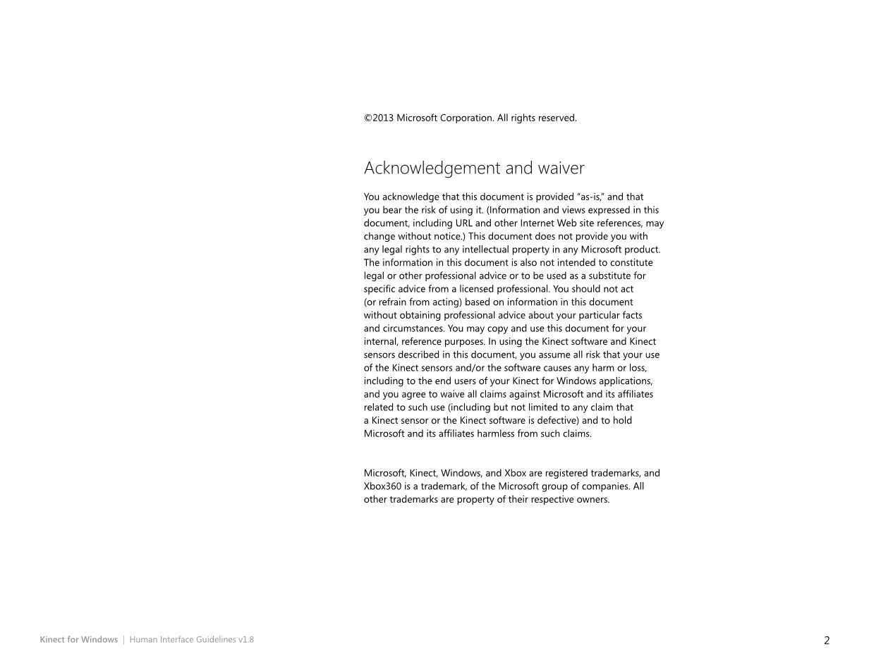 我们想让你有最好的Kinect for Windows体验和用户体验,所以,基于我们长期的设计、开发、和可用性的工作,我们将通过分享我们的最有效的设计技巧,让你走上通向成功的路径,你将能专注于你要解决的所有独特的挑战,让这个指南在手,你会保持领先优势,因为,我们会定期更新它,以反映我们正在进行的研究结果和Kinect for Windows的进化能力。