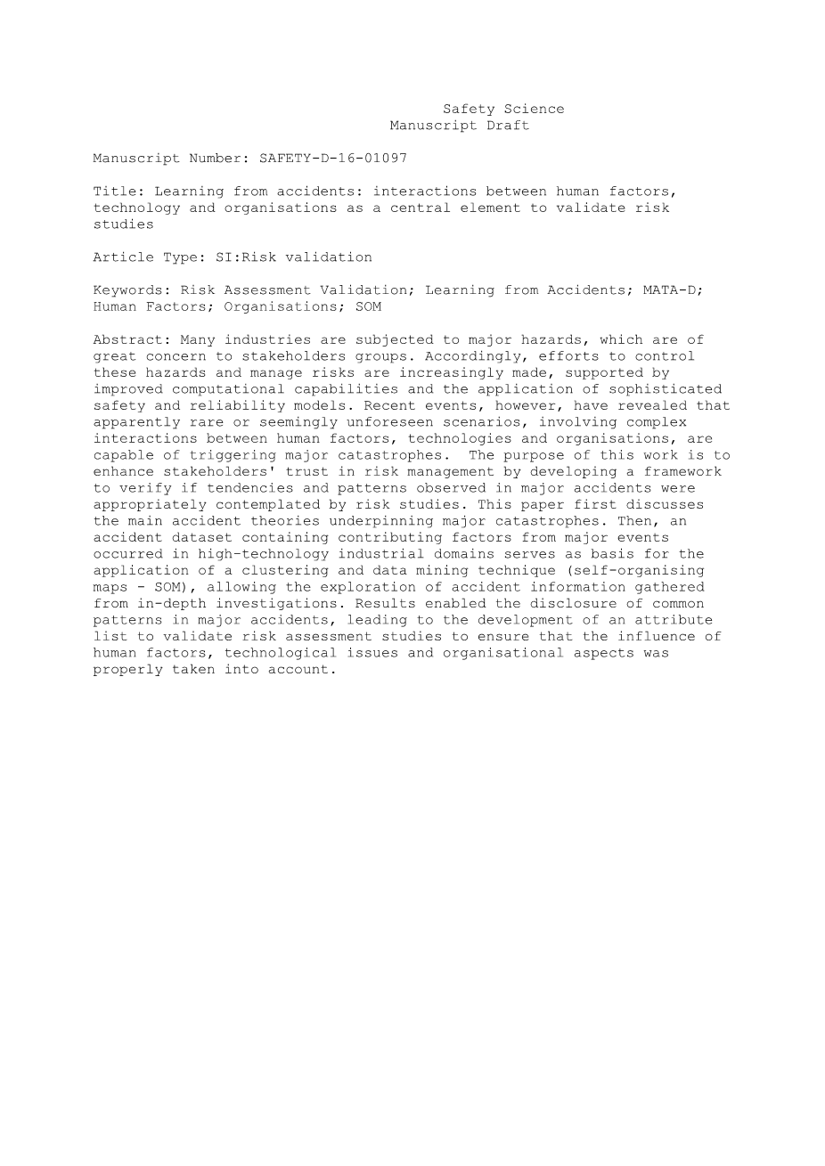 从事故中吸取教训:人为因素、技术和组织之间的相互作用是验证风险研究的核心要素