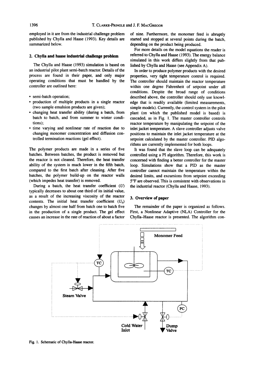 在本文的其余部分安排如下:首先,非线性自适应(NLA)控制器以Chylla - 哈泽反应器中的应用为代表。该算法包括非线性微分几何控制器和扩展卡尔曼滤波器(EKF)提供的时间参数。非线性自适应算法的性能在产品一中体现出来了,即清洗条件下的第一批次。