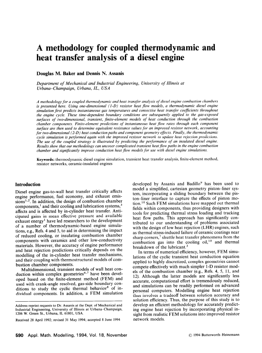 由Assanis和Badillo开发9已被用于建模一个简化的笛卡尔几何活塞 - 衬套系统,并在pis ton-liner界面之间引入一个滑动边界来捕捉活塞运动的影响.10这些FEM模拟已经映射从而为设计人员提供预测热应力加载和跟踪热流路径的工具。 这种方法对于我们理解与低排热(LHR)发动机的设计有关的问题有很大的帮助,例如尖锐角附近的陶瓷涂层的热应力引起的失效,从燃烧气体到冷却的7个穿梭传热现象油10和润滑剂的热分解。3