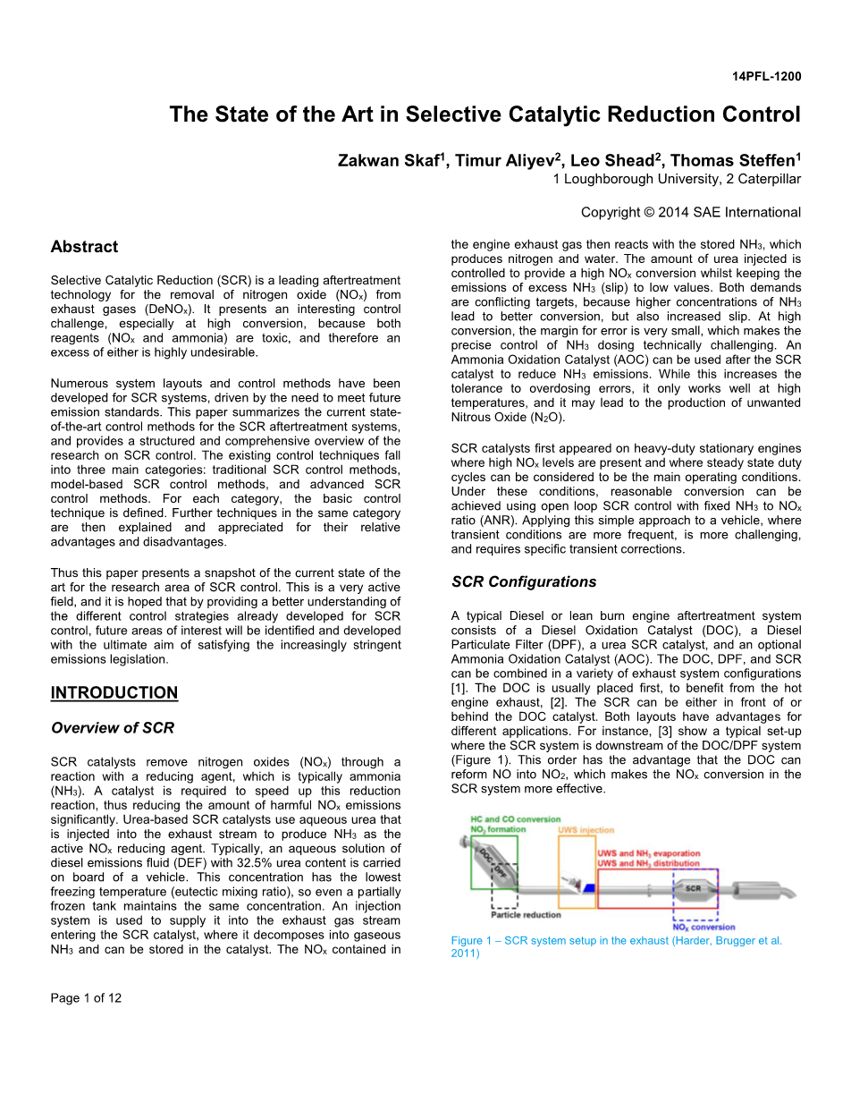 因此本文介绍了SCR控制领域的主要研究现状。这是一个非常活跃的研究领域,一些不同于现有的、易于理解的控制策略亟待被提出,为了满足越来越严格的排放法规,这种利益领域将会不断发展。