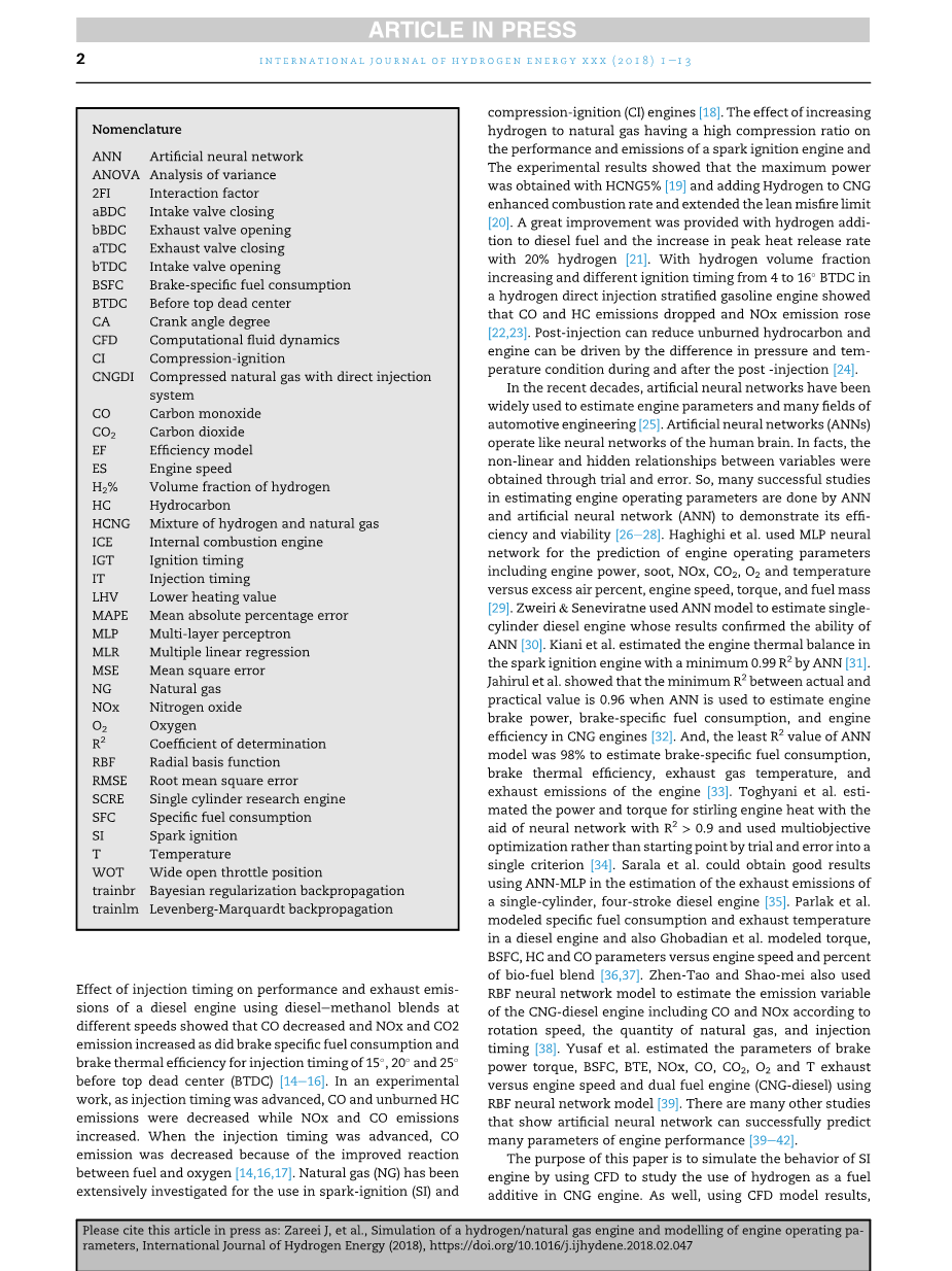 本文的目的是通过使用CFD来研究氢气作为CNG发动机燃料添加剂的用途,以模拟SI发动机的性能。同样,使用CFD模型结果表明。发动机性能包括FCE,功率,转矩,SFC和CO与包括发动机转速(ES),点火正时(IGT),喷射正时(IT)和氢气体积分数(H2%)在内的发动机运行参数的关系与模型MLR,MLP和RBF近似。最后,根据发动机有效参数选定模型,研究了发动机的特性,特别是氢气体积分数。 因此,本研究旨在介绍和分析节气门全开时氢气/天然气燃料在直喷式发动机中的性能和废气排放情况。
