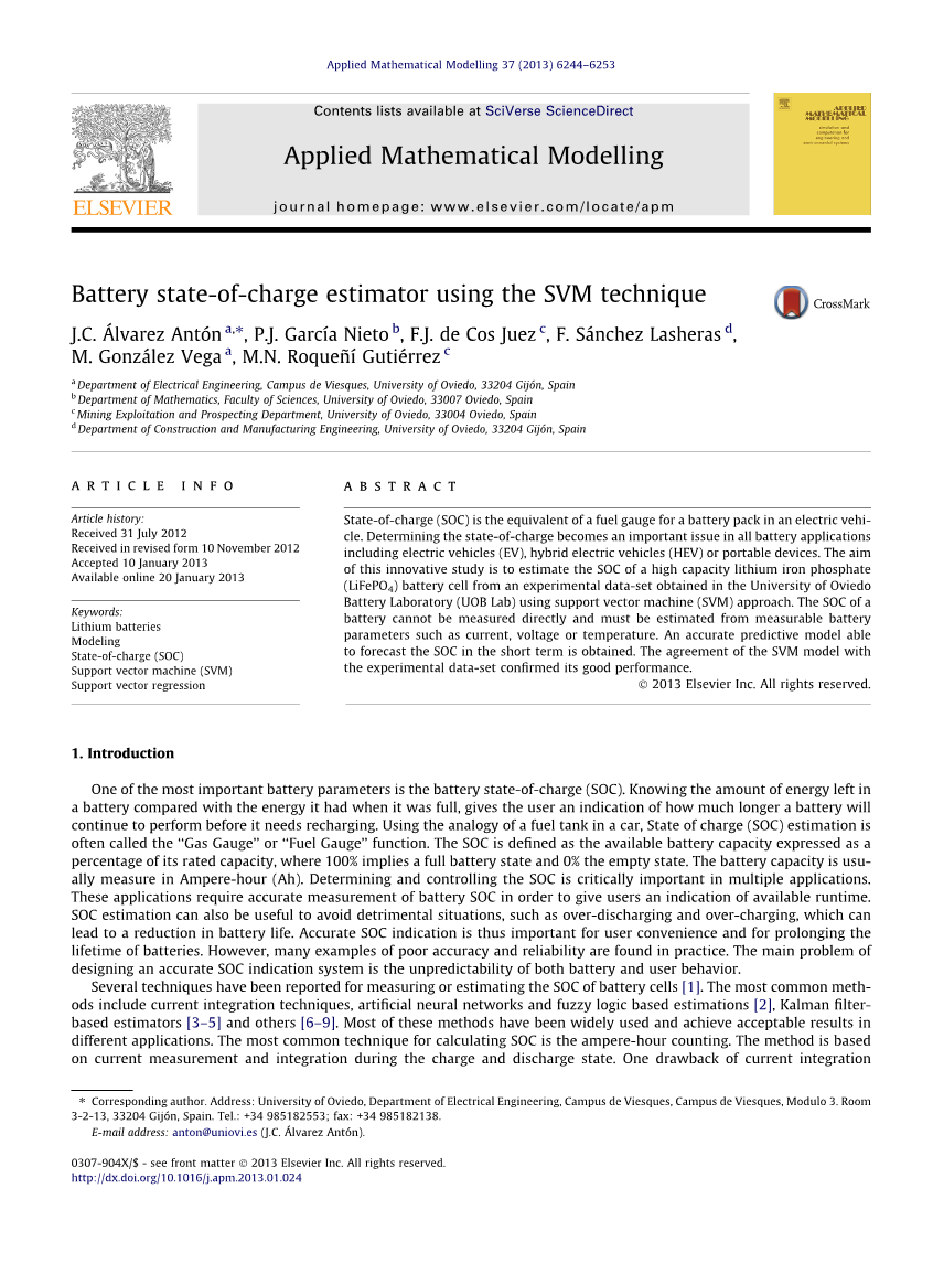 电池的荷电状态(SOC)相当于一辆电动汽车电池组的燃料流量计。 无论是在纯电动汽车(PEV)、混合动力汽车(HEV)还是便携式设备中的电池应用中,确定电池的荷电状态都是一个非常重要的问题。本文通过支持向量机(SVM)的方法,利用奥维多电池实验室(UOB实验室)的实验数据集,对高容量磷酸铁锂电池(LiFePO4)进行SOC估算。电池的SOC不能直接测量,必须从可测量的电池参数(如电流、电压或温度)来估计。使用SVM建立一种准确的估算模型,能够在短时间内估算电池SOC。最后实验结果也表明,通过SVM模型估算的结果与实验数据集的一致性验证了它的良好性能。