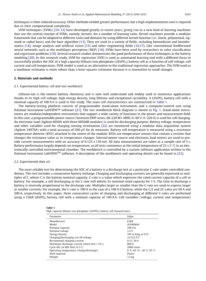 确定电池SOC最可靠的测试是在受控条件下以特定C率进行放电测试。该测试包括连续的电池充电。充电和放电电流通常表示为C的倍数,其中C是电池额定容量。 C率是表示电池或电池的额定电流容量的值。例如,以C速率放电的电池将提供其标称额定容量1小时。放电时间与放电速率成反比。倍数大于或小于C倍率用于表示更大或更小的电流。例如,在100Ah电池的情况下,C率为100A,而C / 2和2C率分别为50A和200A。在本文中,使用标称容量为100Ah的CALB LiFePO4电池单元,以不同的C率进行三个连续的充电和放电循环。