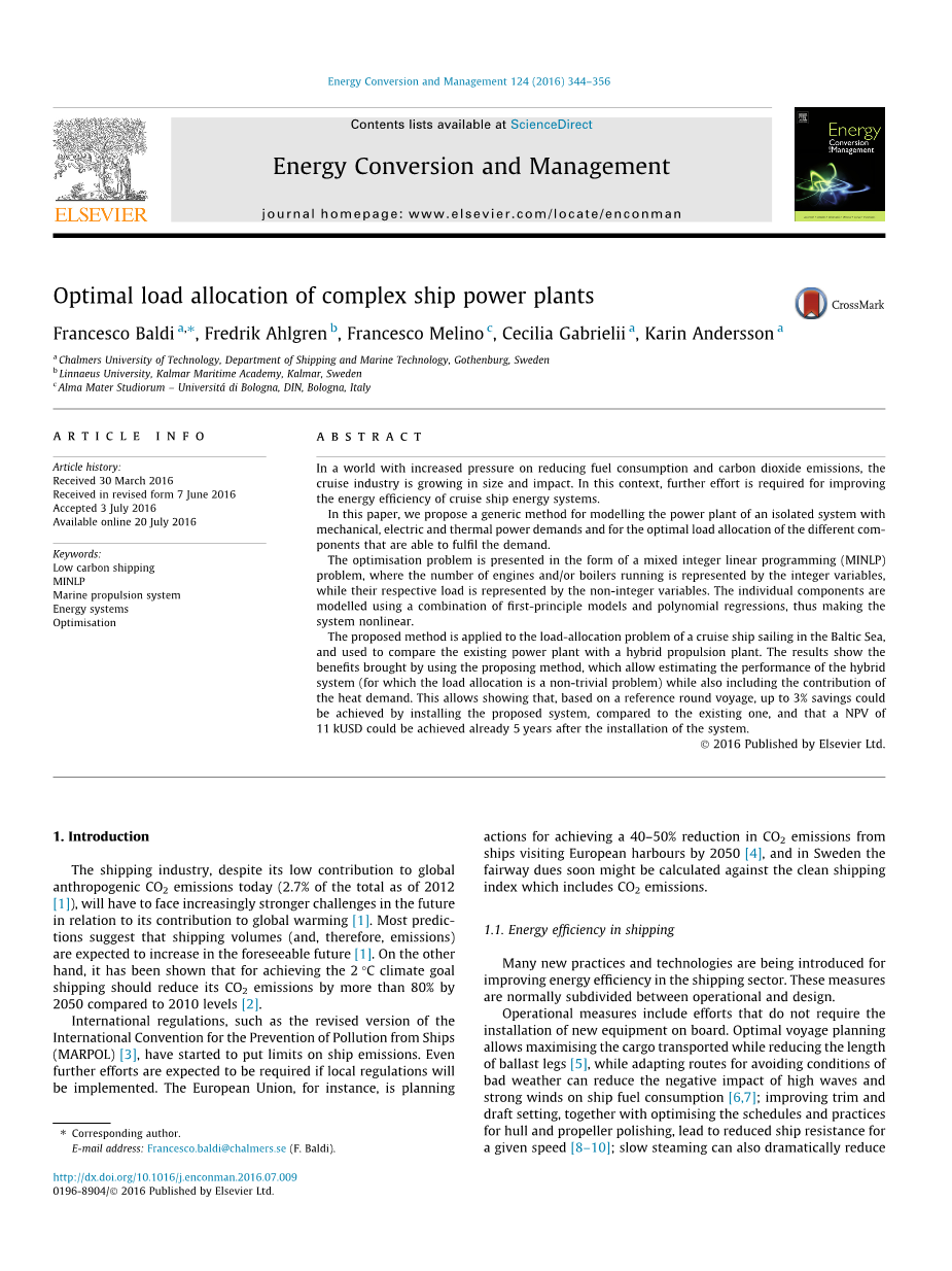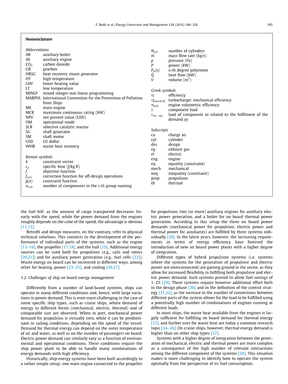 在本文中,我们提出了一种优化船舶电站能量转换器负载配置的方法。更一般地说,所提出的负荷优化方法可以应用于具有与机械,电力和火力的时间相关的需求的,与外部能量网络无关的能量系统。本文提出的方法被应用于 一艘游轮。 特别地,该方法是对现有系统的改进,其中所有发动机被允许有助于实现机械功率和电功率需求。所提出的方法的应用允许处理增加的负载分配问题的复杂性,并且因此评估由系统改进导致的预期的燃料节省。