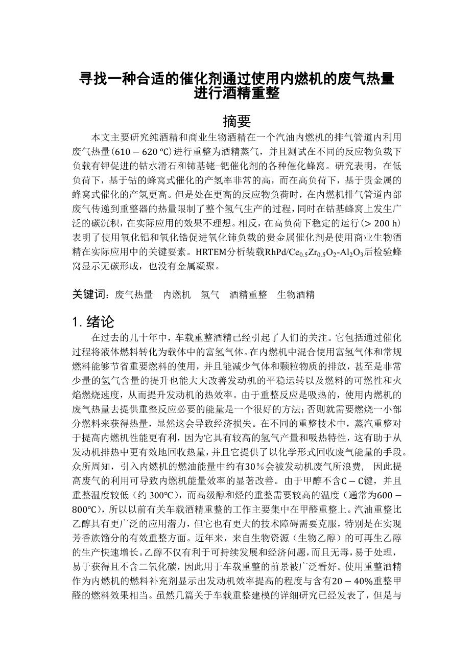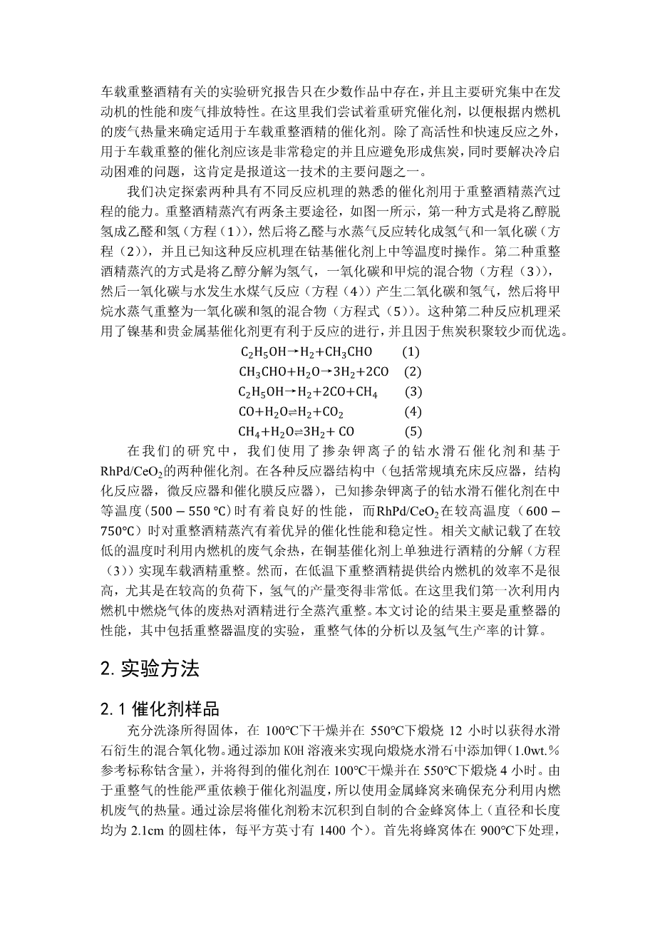 发动机掺混重整酒精蒸汽排放试验研究外文翻译资料