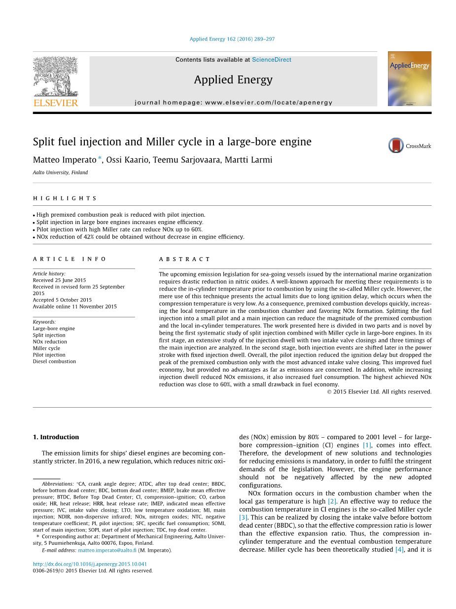 关键词:大口径发动机,拆分注射,NOx减少,米勒循环,试点注射,柴油燃烧