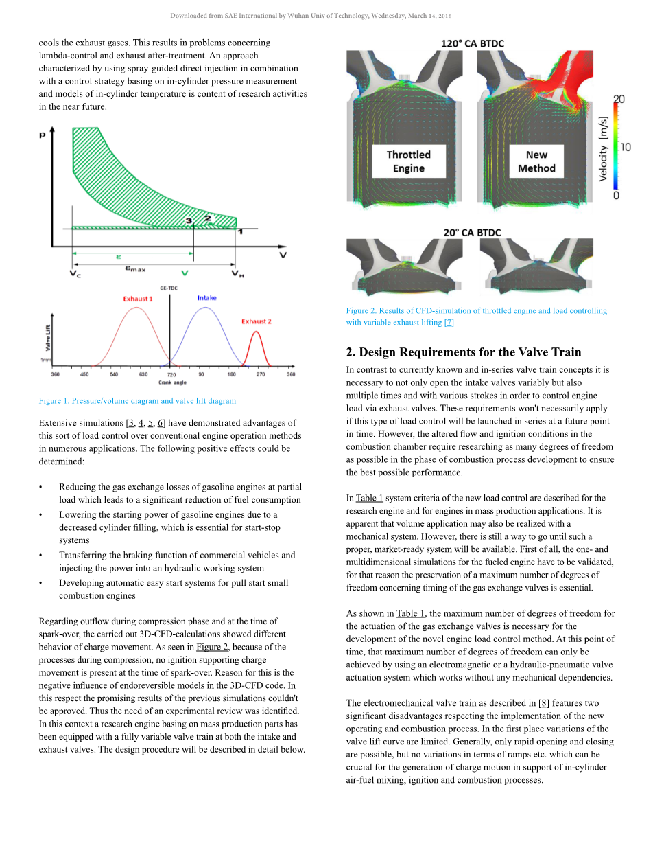 图2.节流发动机的CFD仿真结果和可变排气升程的负载控制[7]