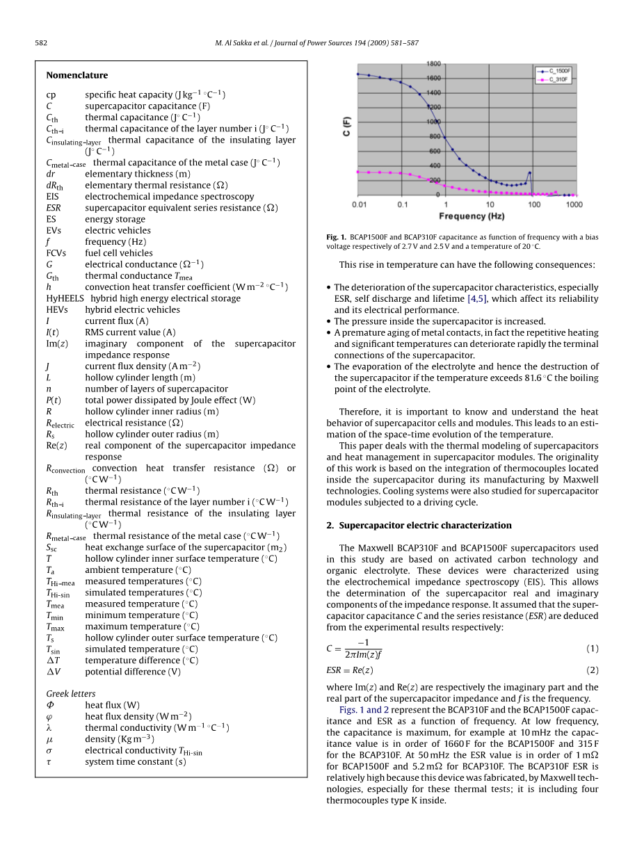 参考文献[6-9]提出了超级电容器的热模型。 使用不同的方法,热方程分辨率,电热类比。 开发的模型可以确定超级电容器的温度。