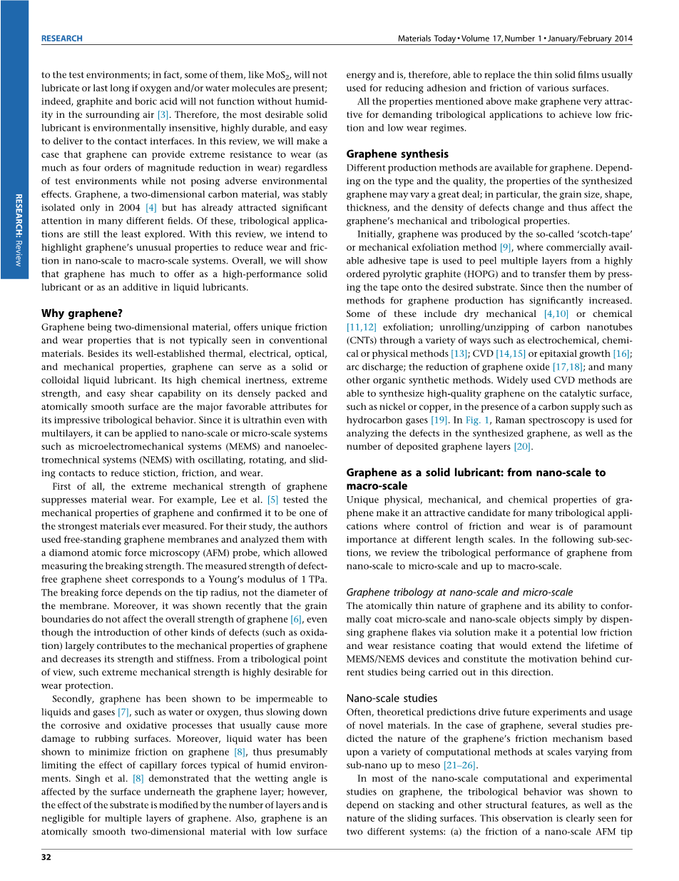 石墨烯的生产方法多种多样。根据类型和质量,所合成的石墨烯的性质可能会有很大的不同;特别是,晶粒尺寸、形状、厚度、密度和缺陷的变化从而影响石墨烯的力学和摩擦学性能。
