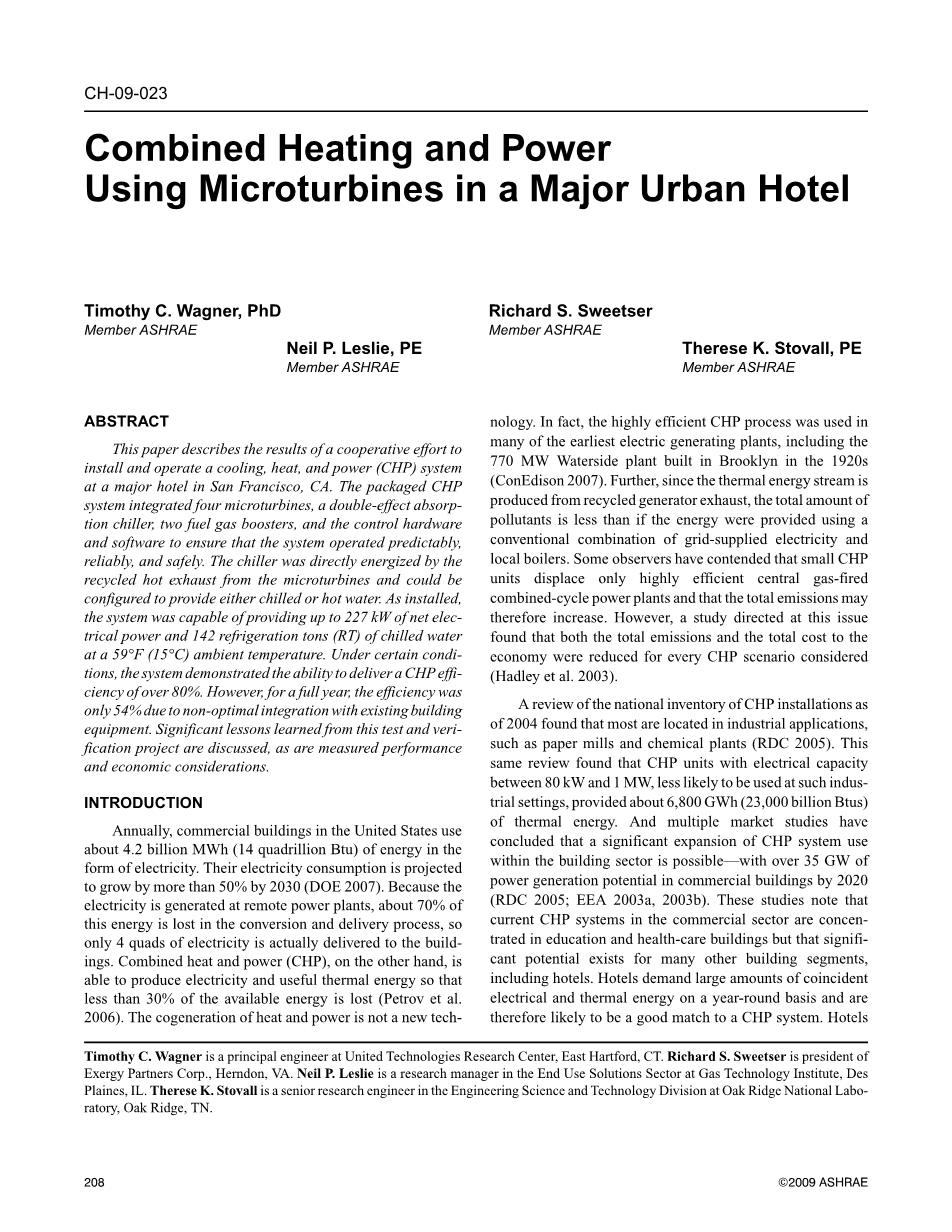 Timothy C. Wagner,博士ASHRAE成员 Richard S. Sweetser会员ASHRAE