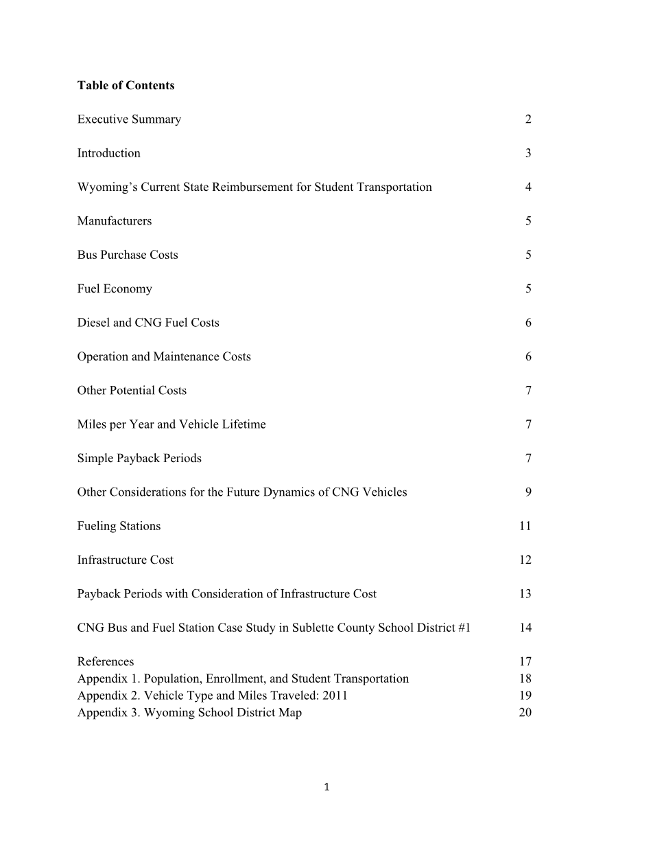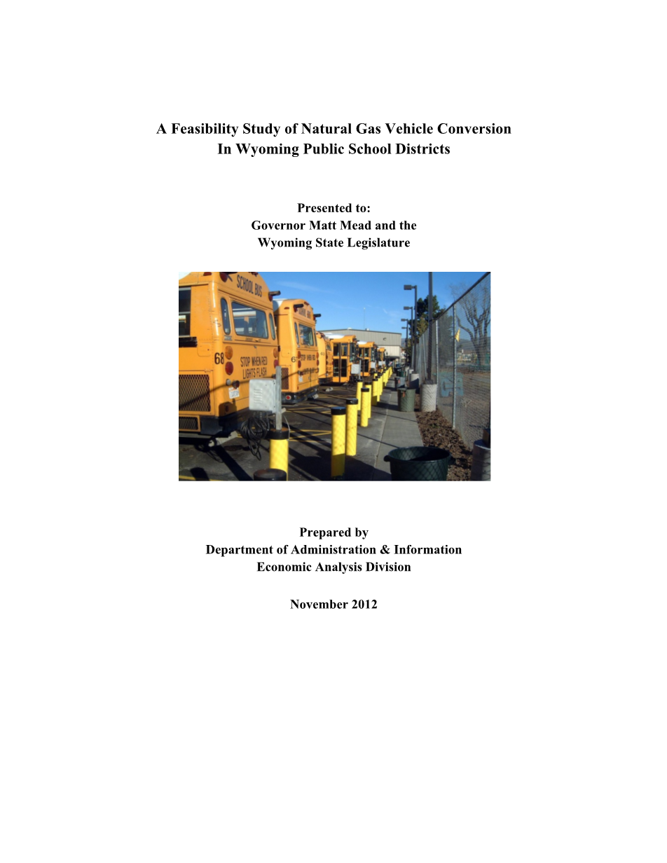 尽管天然气汽车有良好的性能,但是压缩天然气校车在占据主要市场份额上面临着巨大的障碍,根本上是因为购买价格溢价约为30000美元。另一个阻碍使用天然气汽车的障碍,是缺乏可加注燃料的基础设施。目前,怀俄明州只有五个CNG车站允许公众存取(见表2在第11页)。由于目前道路上缺乏天然气汽车,企业对是否积极投资于CNG基础设施犹豫不决。截止2012年,联邦政府对购买天然气汽车或建造CNG车站的激励措施已经期满,这包括了联邦汽车燃料损失,去除了以前收到的CNG燃料税收抵免。
