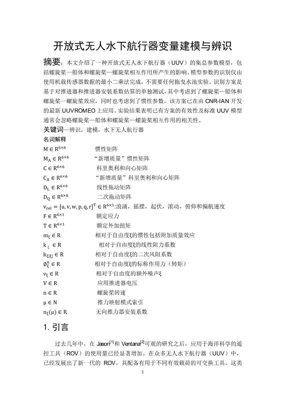 基于Huber M估计的水下机器人动力学模型参数鲁棒辨识算法外文翻译资料 2022-07-14 14:48:04 英语原文共 14 页,剩余内容已隐藏,支付完成后下载完整资料 英语原文共 27 页,剩余内容已隐藏,支付完成后下载完整资料资料编号:[9526],资料为PDF文档或Word文档,PDF文档可免费转换为Word 原文和译文剩余内容已隐藏,您需要先支付 30元 才能查看原文和译文全部内容!立即支付 发小红书推广免费获取该资料资格。点击链接进入获取推广文案即可: Ai一键组稿 | 降AI率 | 降重复率 | 论文一键排版 PREVIOUS NEXT 您可能感兴趣的文章 9000吨供油船机舱设备选型与热平衡分析外文翻译资料 沿海高速客船机舱设备选型及经济性分析外文翻译资料 海.上溢油应急技术外文翻译资料 可变压缩比柴油发动机的效率和生态特征外文翻译资料 高速船 第4部分 船舶系统和设备外文翻译资料 14平衡常数 外文翻译资料 敞水中空化螺旋桨和喷嘴式全 回转推进器的CFD研究外文翻译资料 生物燃料及其二元(柴油-生物柴油)和三元(乙醇生物柴 油-柴油)混合燃料在内燃机减排上的作用外文翻译资料 游轮发电厂优化和比较分析外文翻译资料 内燃机最优放热率计算外文翻译资料