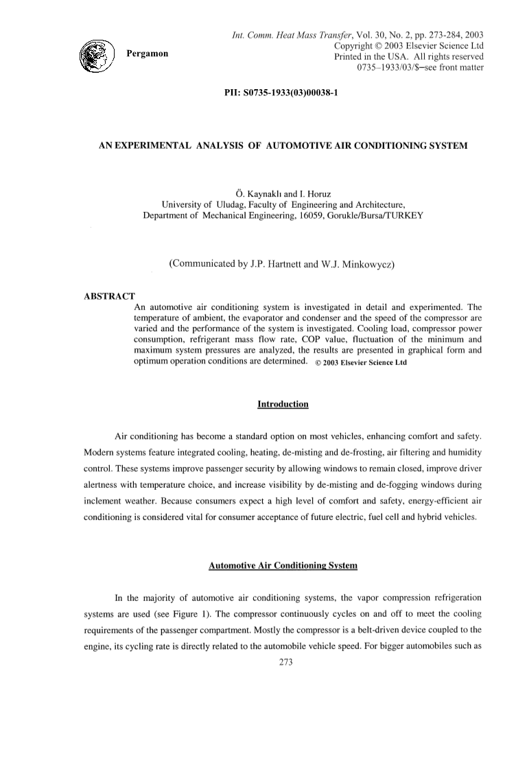 本文对汽车空调系统进行了详细的研究和实验。改变环境、蒸发器、冷凝器温度和压缩机转速, 并对系统的性能进行了研究。分析了冷却负荷、压缩机功耗、制冷剂质量流量、COP 值、最小和最大系统压力波动情况, 并对结果进行了图解, 确定了最佳运行条件。