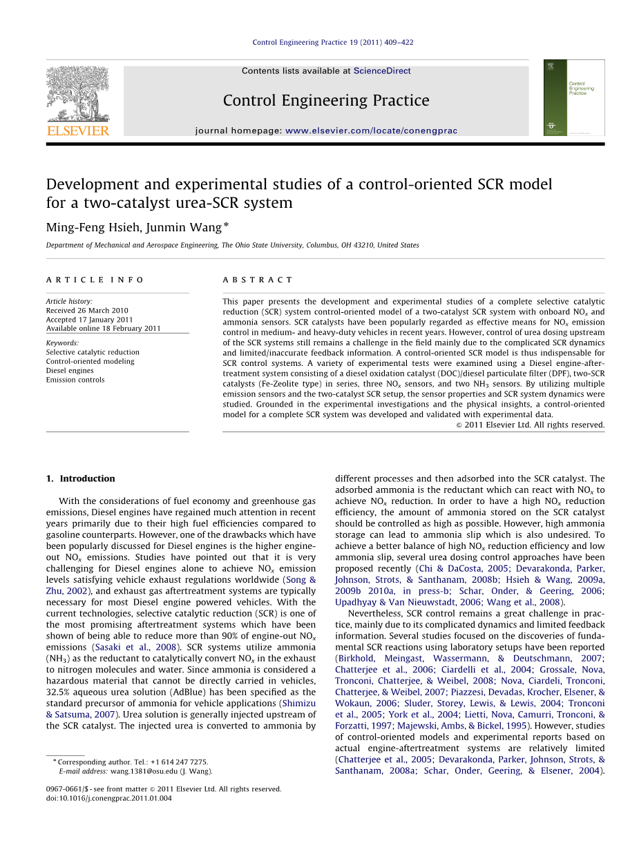 基于双催化剂尿素SCR系统的控制导向SCR模型的开发和实验研究