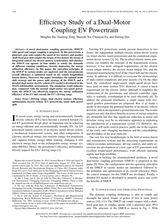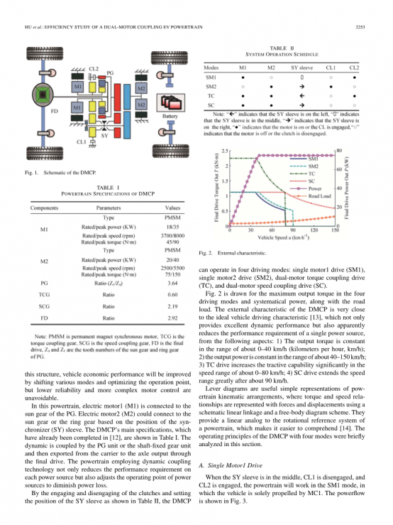 索引条款:行驶里程;双电动机;效率优化;电动汽车(EV)动力总成;模式转换;动力分配