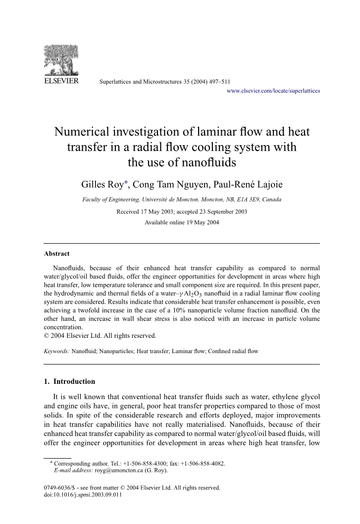 关键字:纳米流体;纳米颗粒;热传递;层流;密闭径向流