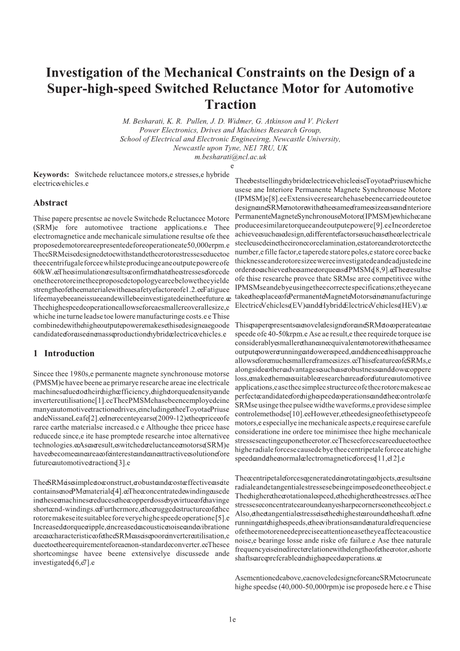 M. Besharati, K. R. Pullen, J. D. Widmer, G. Atkinson and V. Pickert Power Electronics, Drives and Machines Research Group, School of Electrical and Electronic Engineeirng, Newcastle University, Newcastle upon Tyne, NE1 7RU, UK