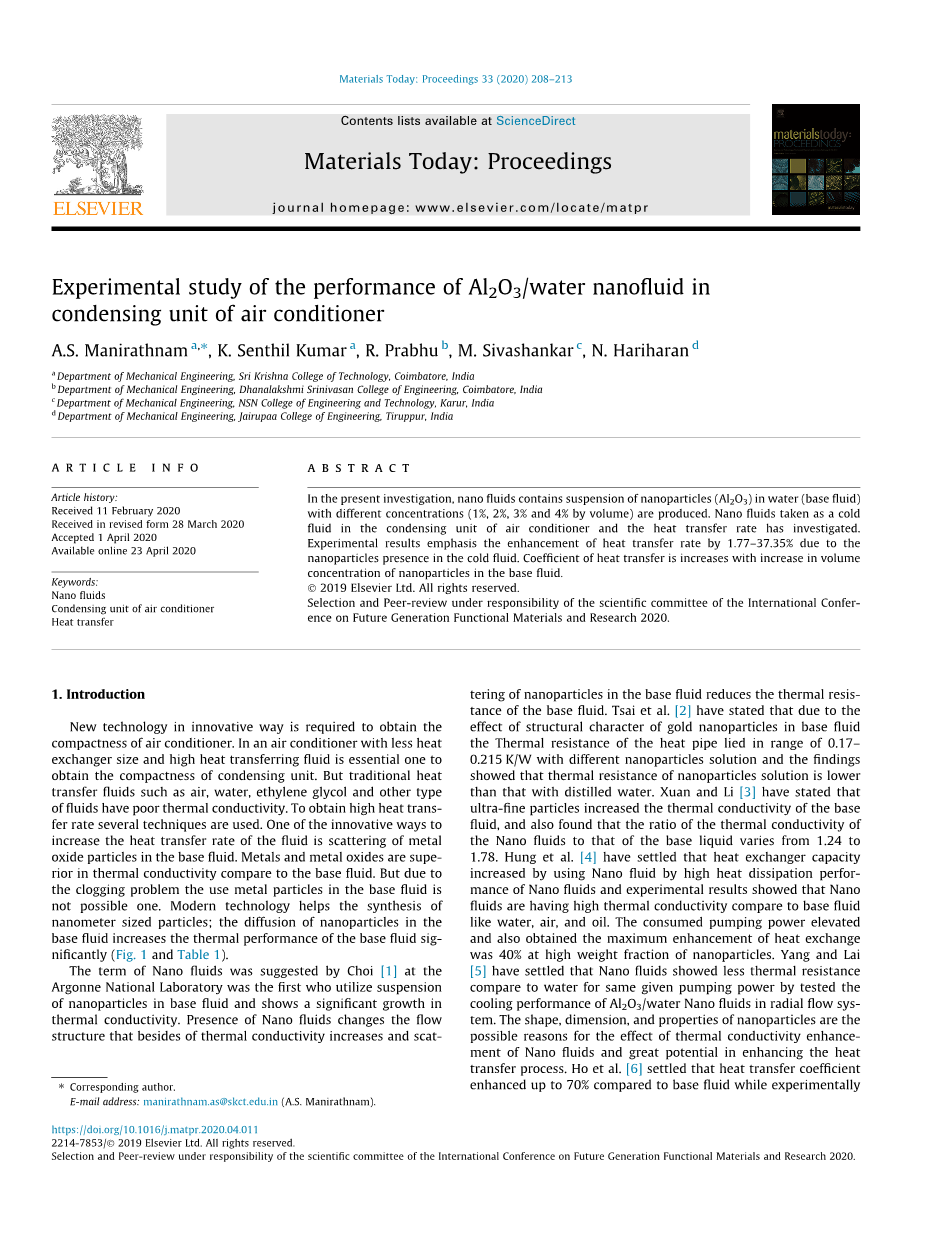 通过创新的技术来获得空调的紧凑性。在换热器尺寸较小、热量较高的空调系统中,传热流体是保证冷凝机组紧凑性的关键。但传统的传热流体,如空气、水、乙二醇等类型的流体导热性较差。为了获得较高的传热率,采用了几种技术。提高流体传热效率的创新方法之一是在基液中散射金属氧化物颗粒,金属和金属氧化物的导热性优于基液。但由于堵塞问题,在基液中使用金属颗粒是不可能的。现代技术有助于纳米颗粒的合成;纳米颗粒在基液中的扩散显著提高了基液的热性能(图1和表1)。