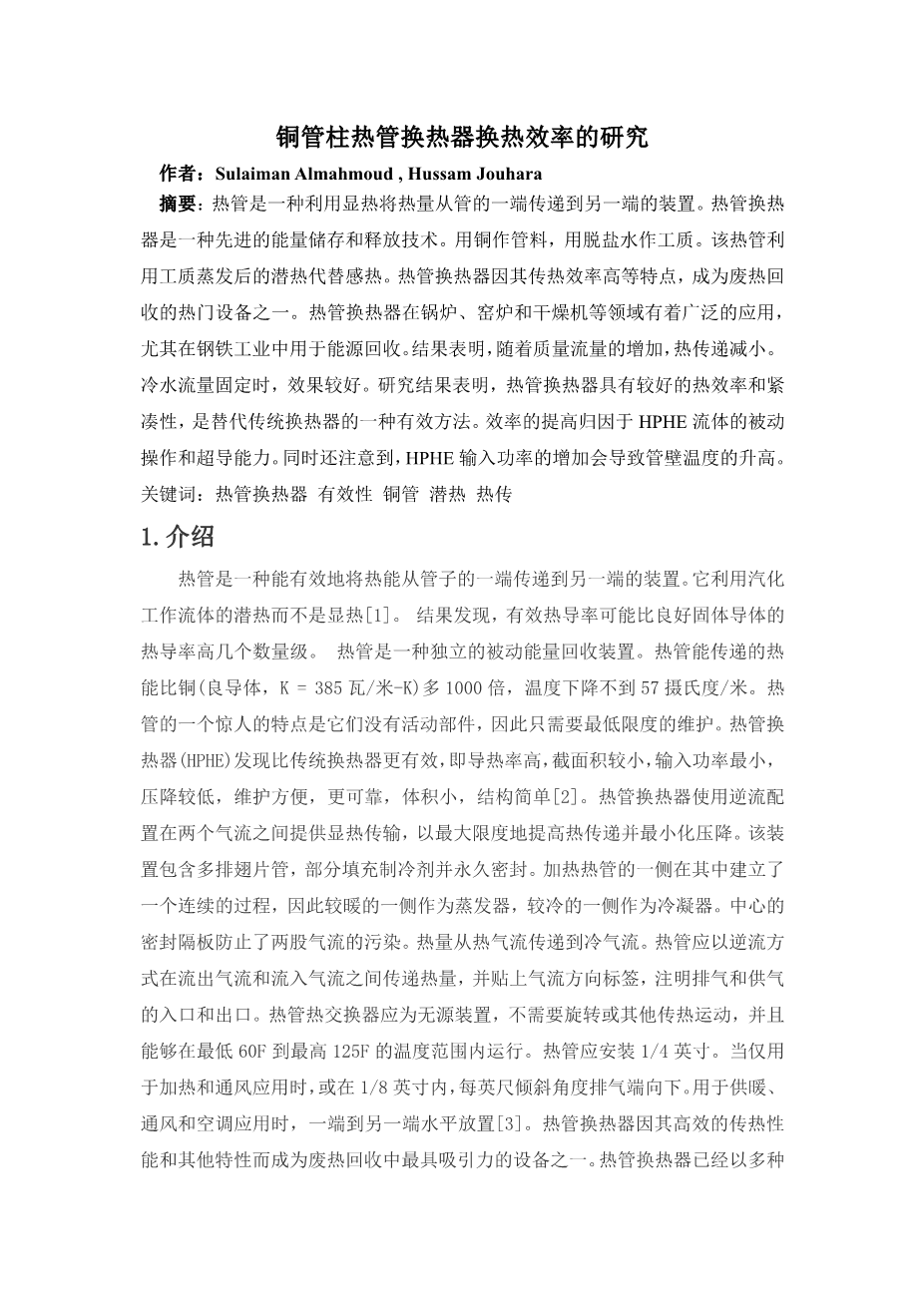 铜管柱热管换热器换热效率的研究外文翻译资料