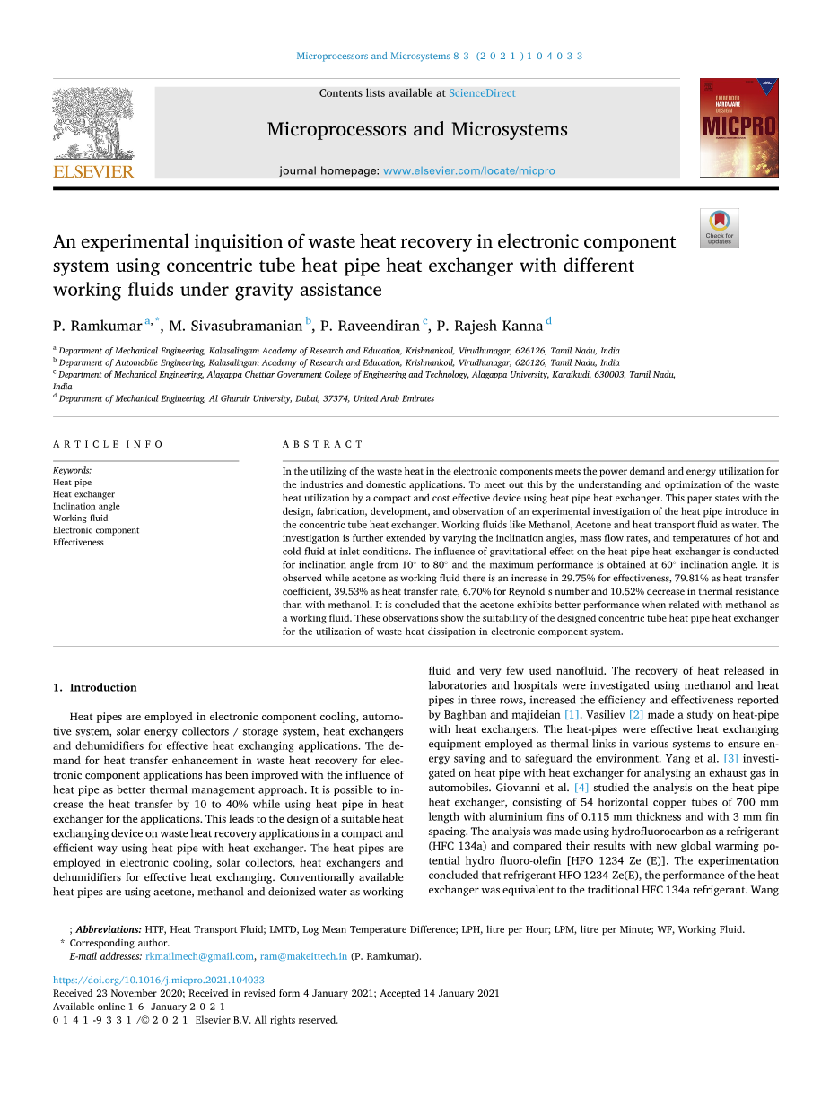 P. Ramkumara,*, M. Sivasubramanianb, P. Raveendiranc, P. Rajesh Kannad