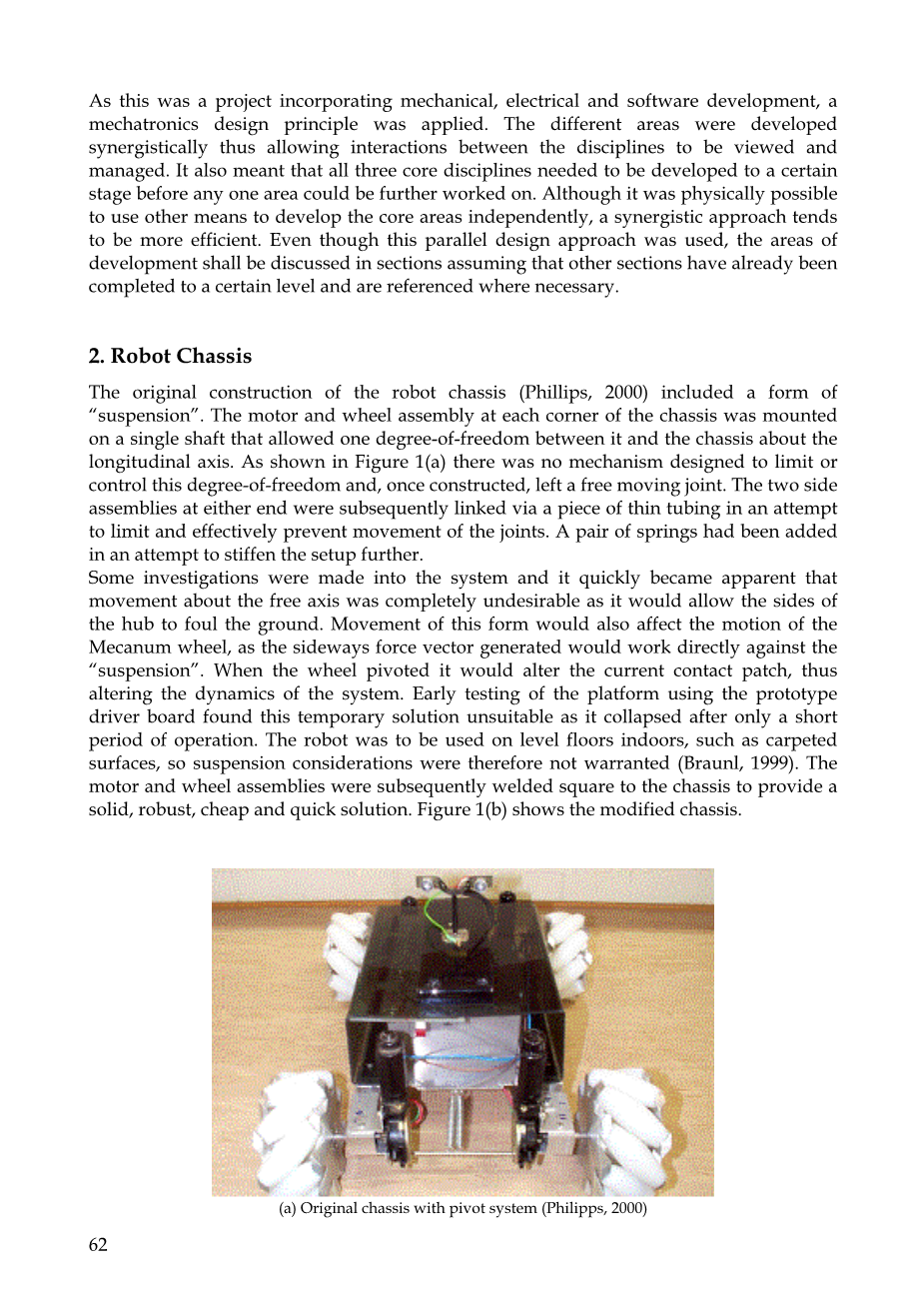 1999年)。随后将电动机和车轮组件垂直焊接到底盘上,以提供可靠、牢固、低成本且快捷的解决方案。图1(b)显示了修改后的机箱。