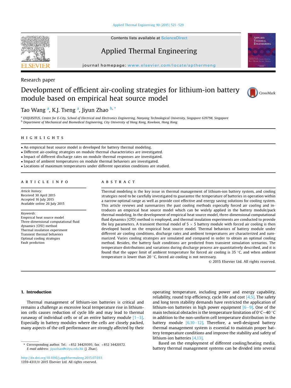 经验热源模型;三维计算流体力学(CFD)方法;绝热实验;瞬态热行为;优化冷却策略;故障预测