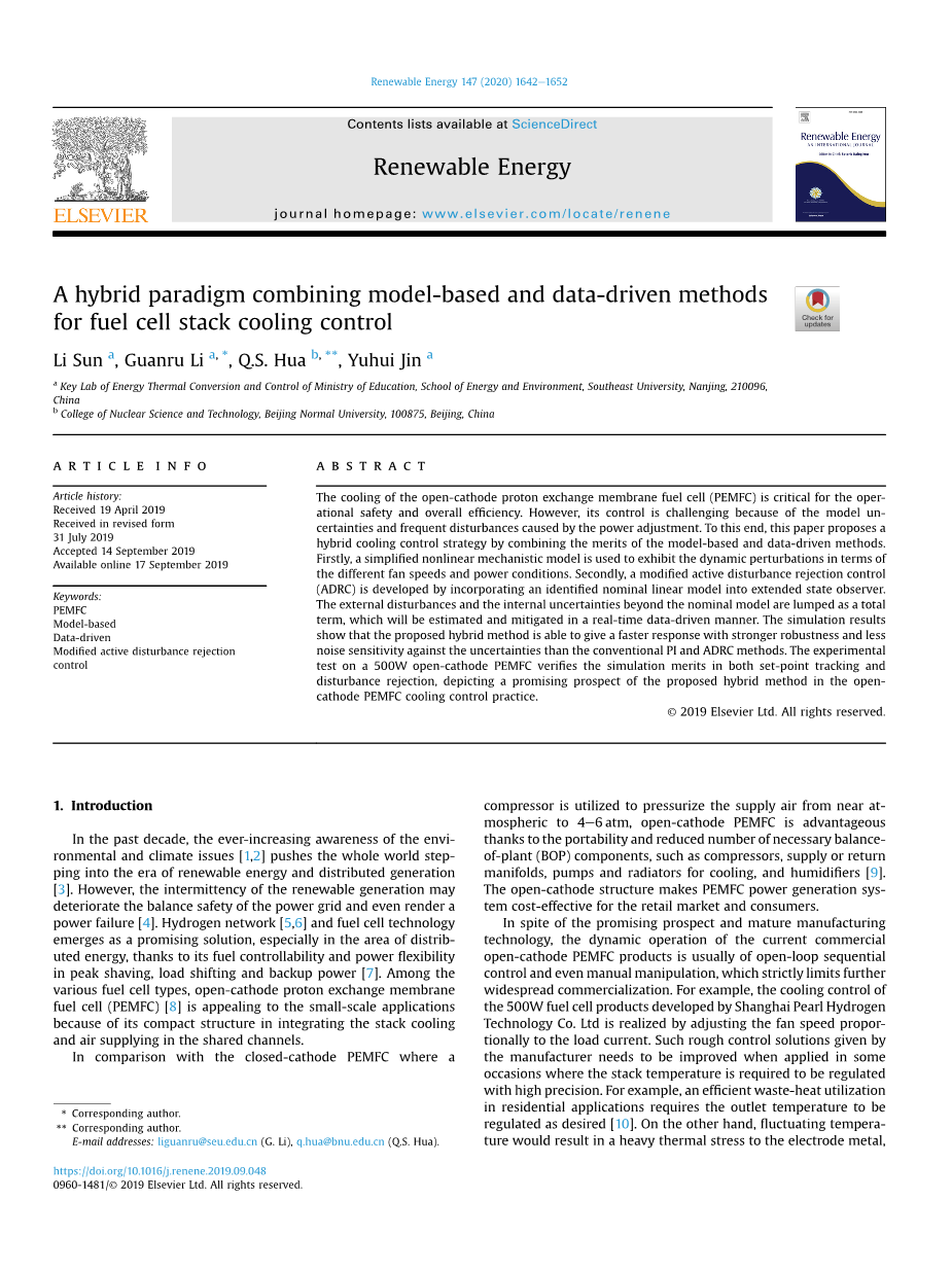 本文的目的是为开式阴极PEMFC温度控制提出一种经济有效的解决方案,该解决方案能够适应不同的工作条件,减少负载干扰的影响并且对测量噪声不敏感。 为了同时实现这些目标,本文开发了一种基于模型和数据驱动的组合ADRC解决方案,并做出了以下贡献。