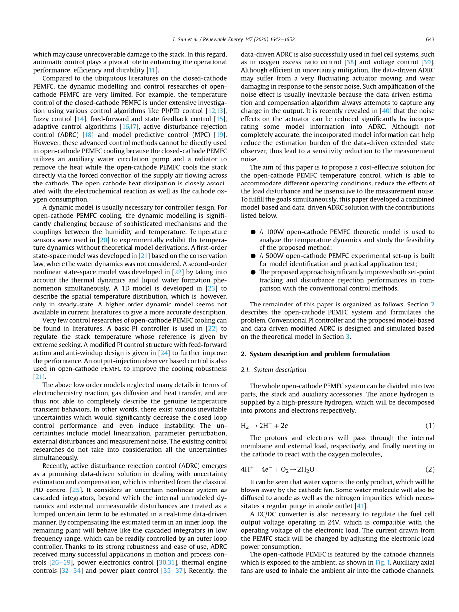 本文的其余部分安排如下。 第2节介绍了开放式阴极PEMFC系统并提出了问题。 基于第3节中的理论模型,设计和仿真了常规PI控制器以及基于模型和数据驱动的改进型ADRC。