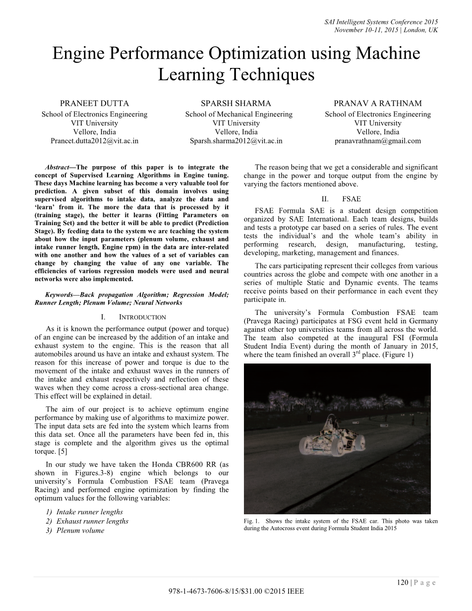 摘要:本文的目的是将监督学习算法的概念整合到发动机的调整中。现今机器学习成为一个非常有价值的预测工具。该领域中给定的子集涉及到使用监督算法来获取数据、分析数据并从中“学习”。它处理的数据越多(训练阶段),它学习的越好(训练集上的拟合参数),并且越能预测(预测阶段)。通过向系统输入数据,我们教会系统如何关联这些数据中的输入参数(进气量,排气和进气流道长度,发动机转速)与其他参数,以及如何通过更改任何一个变量的值来更改一组变量的值。使用了多种多样的回归模型的效率,并且实现了神经网格。