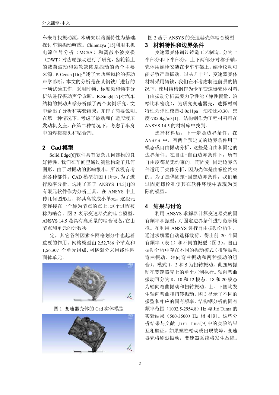 基于有限元分析的汽车变速器壳振型分析外文翻译资料