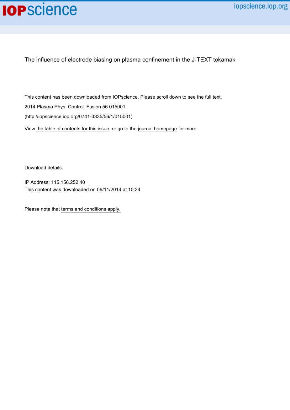 J-TEXT托卡马克中偏压电极对等离子体状态的影响外文翻译资料