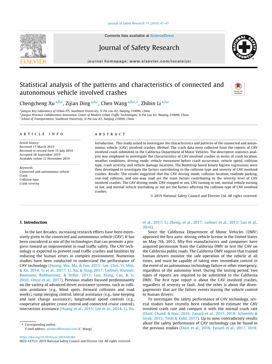 关键词:联网自动驾驶车辆、碰撞、碰撞类型、碰撞严重性