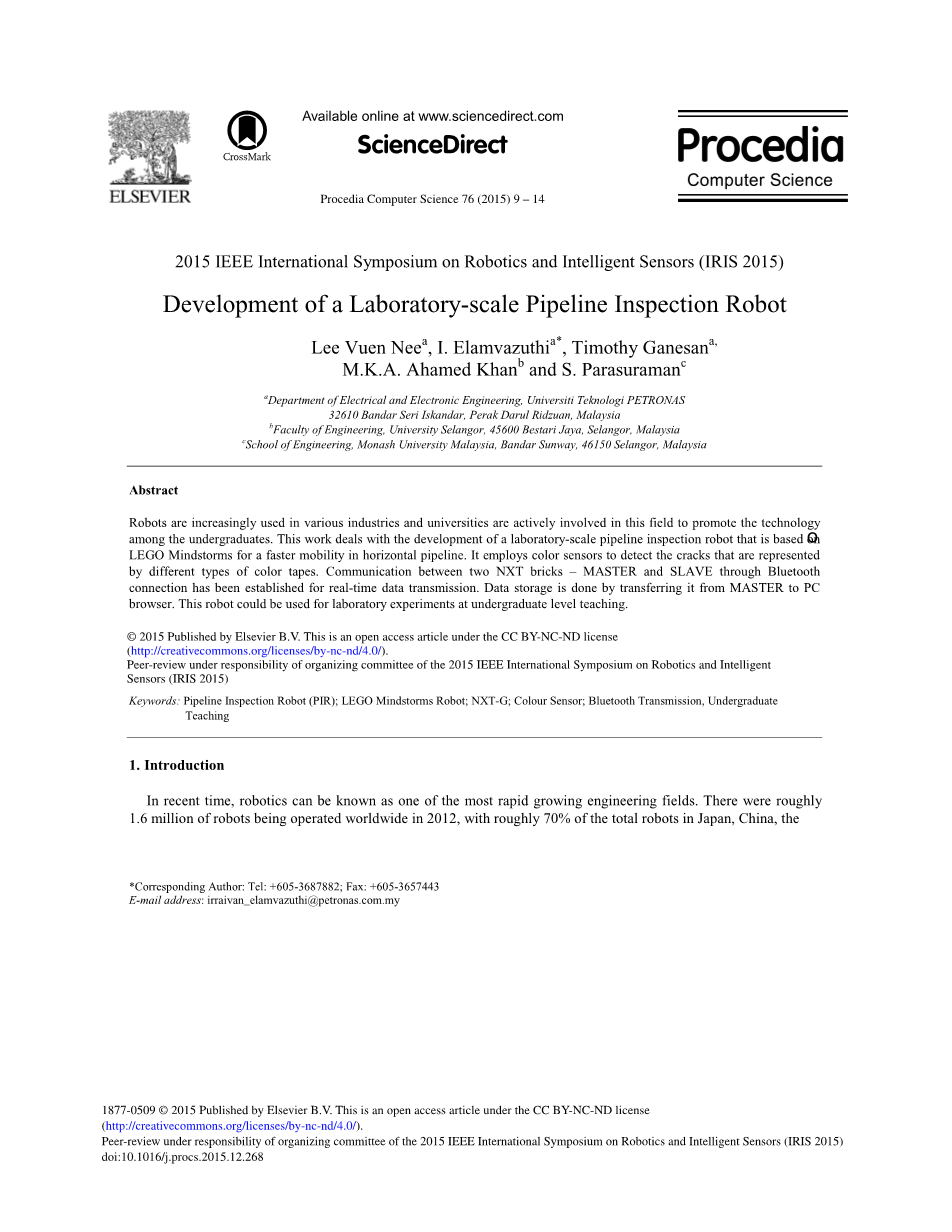 摘要:本文介绍了一种自主式自驱动内联检测机器人智能蜘蛛的概念样机的设计与开发。主要目的是利用该机器人进行海上油气管道的检测,特别是对于常规智能清管系统无法或难以部署的管道。这款智能蜘蛛由它自己的车载MCU核心实时控制,并由一个巨大的电池供电,预计将以自主方式执行管道检查。采用柔性机构结构,实现了爬行器适应不同口径管道的灵活性,以及在穿越障碍物区域、转弯或交叉路口等不规则情况下的机动能力。这种自适应是由单片机控制器根据压力传感器的反馈自动控制的。详细讨论了所选配的电机、电池组以及人机界面。一些初步的实验室测试结果表明,这种设计和开发的可行性和成本效益是很有前途的。
