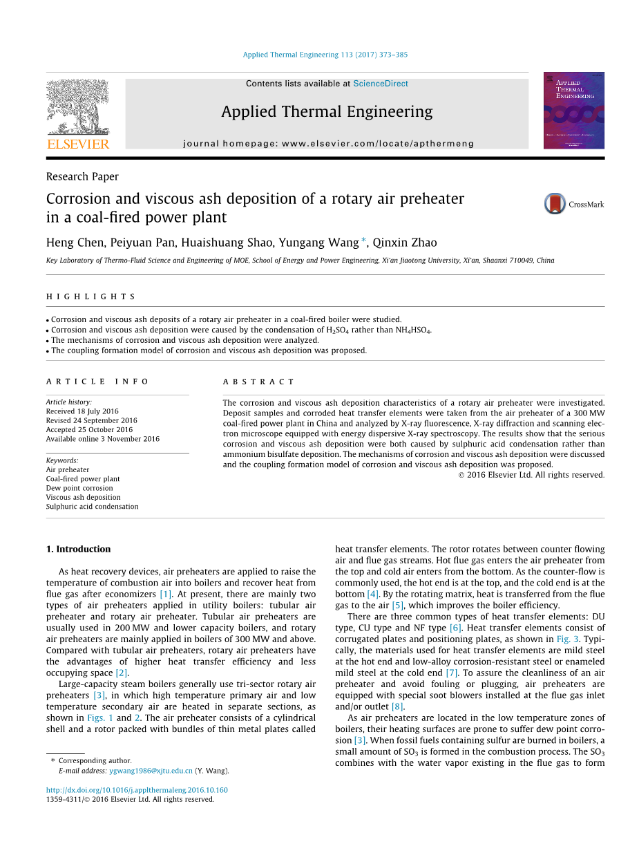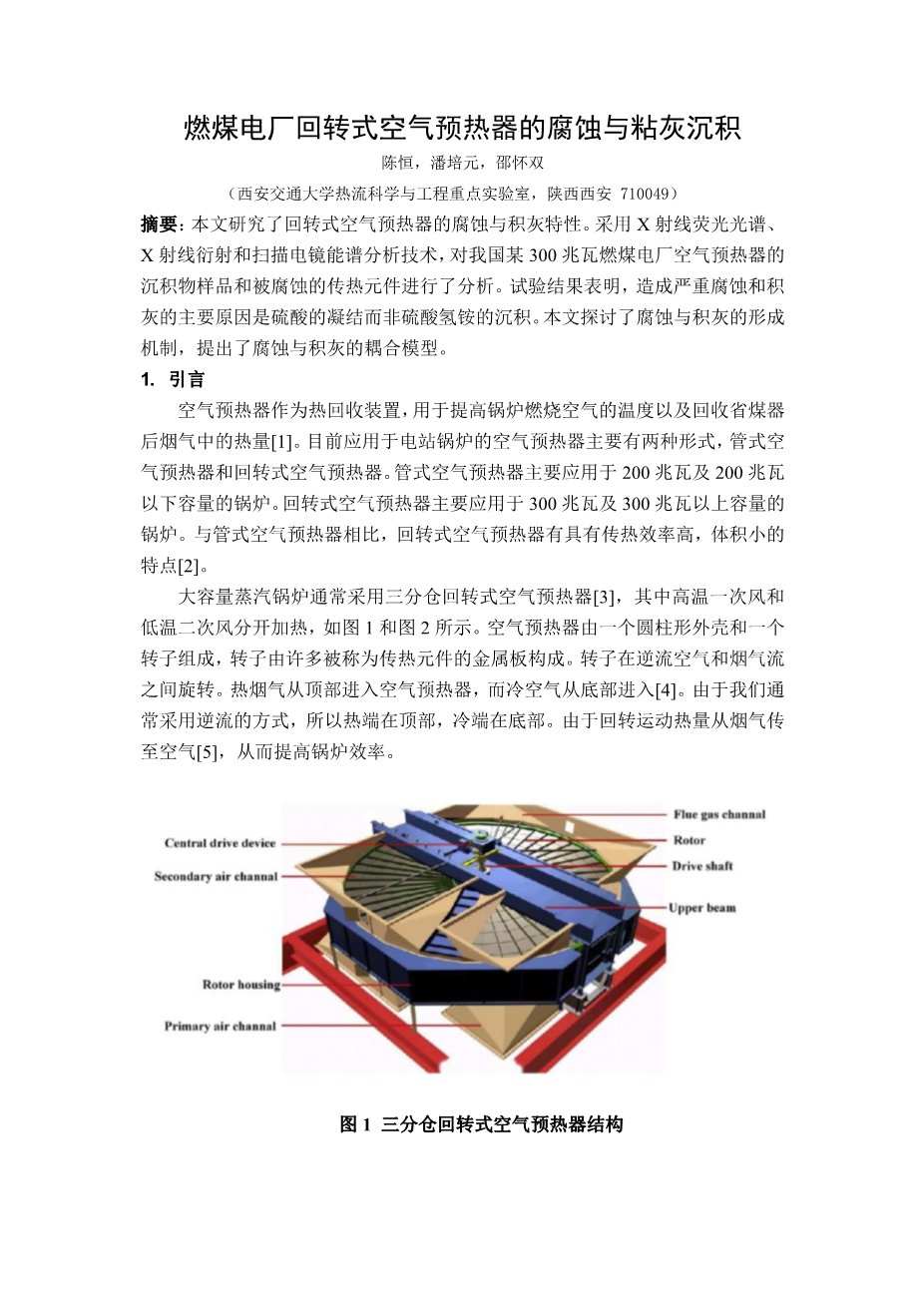 燃煤电厂回转式空气预热器的腐蚀与粘灰沉积外文翻译资料