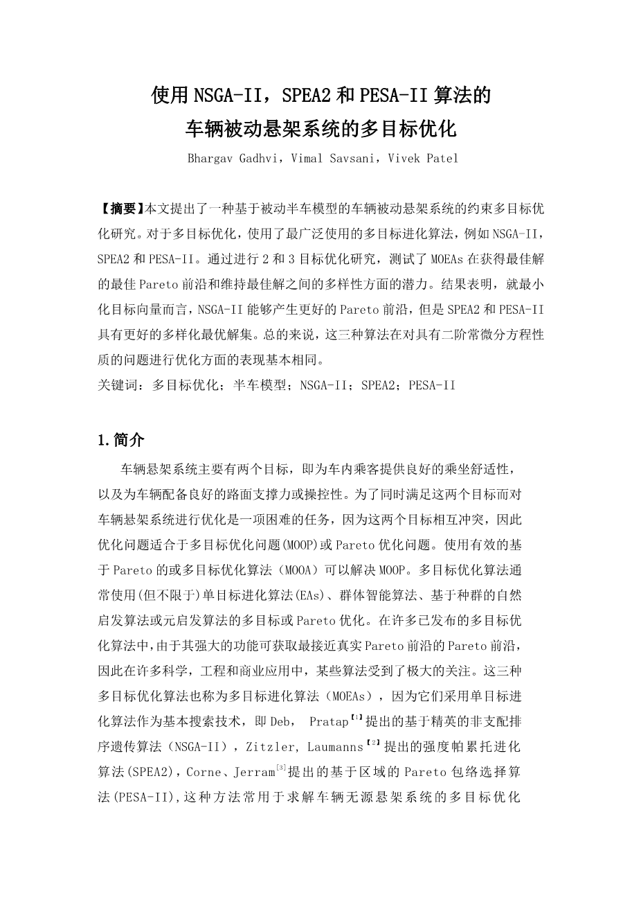 使用NSGA-II,SPEA2和PESA-II算法的 车辆被动悬架系统的多目标优化外文翻译资料 2022-08-13 15:17:31 英语原文共 8 页,剩余内容已隐藏,支付完成后下载完整资料 英语译文共 12 页,剩余内容已隐藏,支付完成后下载完整资料 资料编号:[236147],资料为PDF文档或Word文档,PDF文档可免费转换为Word 原文和译文剩余内容已隐藏,您需要先支付 30元 才能查看原文和译文全部内容!立即支付 发小红书推广免费获取该资料资格。点击链接进入获取推广文案即可: Ai一键组稿 | 降AI率 | 降重复率 | 论文一键排版 PREVIOUS NEXT 您可能感兴趣的文章 9000吨供油船机舱设备选型与热平衡分析外文翻译资料 沿海高速客船机舱设备选型及经济性分析外文翻译资料 海.上溢油应急技术外文翻译资料 可变压缩比柴油发动机的效率和生态特征外文翻译资料 高速船 第4部分 船舶系统和设备外文翻译资料 14平衡常数 外文翻译资料 敞水中空化螺旋桨和喷嘴式全 回转推进器的CFD研究外文翻译资料 生物燃料及其二元(柴油-生物柴油)和三元(乙醇生物柴 油-柴油)混合燃料在内燃机减排上的作用外文翻译资料 游轮发电厂优化和比较分析外文翻译资料 内燃机最优放热率计算外文翻译资料