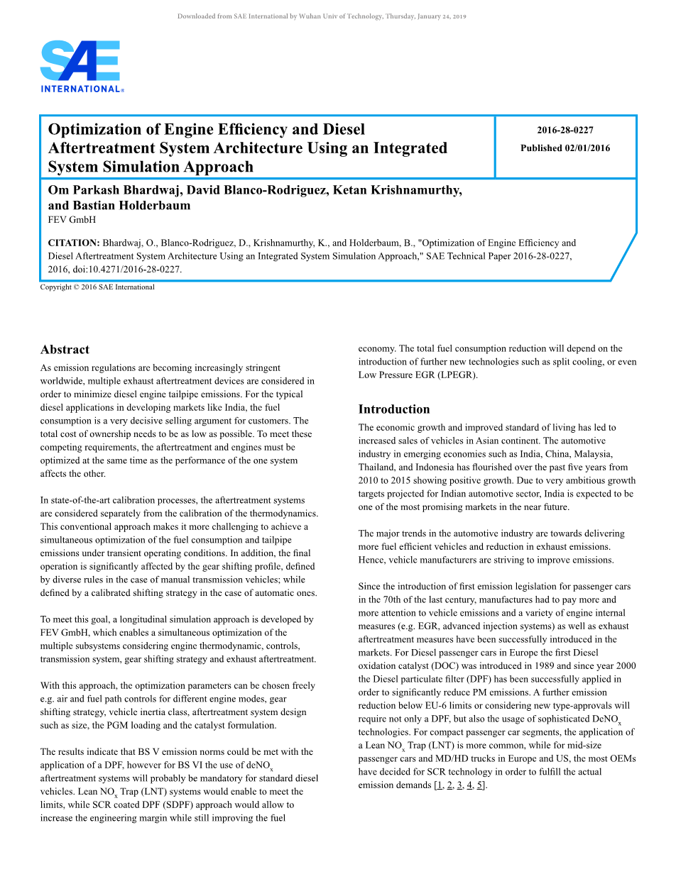 摘 要:随着排放法规的日益严格,为了尽量减少柴油机的尾气排放,世界范围内都在考虑使用多个排气后处理装置。对于柴油车在印度等发展中国家市场的销售来说,燃油消耗是客户非常关心的一点,对他们而言购车总成本要尽可能地低。为了满足这些竞争要求,后处理系统和发动机必须同时被优化,因为一个系统的性能会影响另一个。