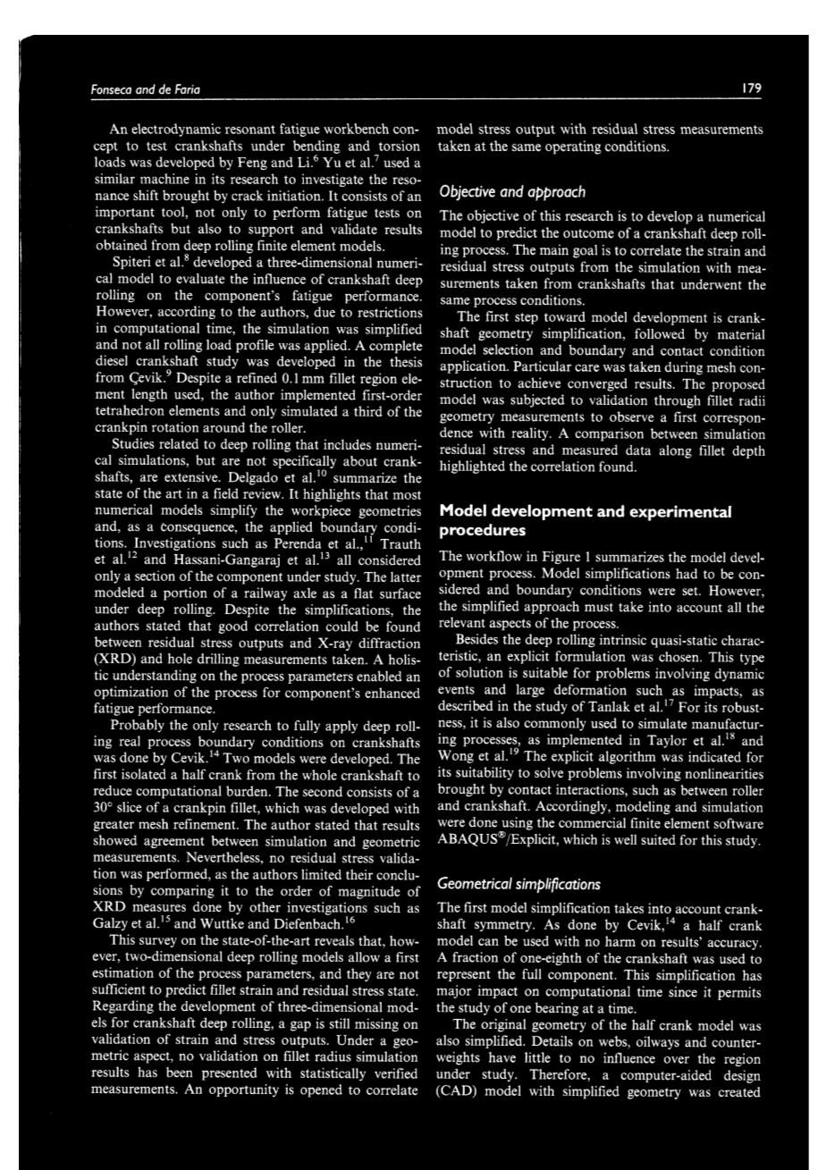然而,这项最新的研究表明,二维深轧模型允许对工艺参数进行首次评估,但它们不足以预测圆角应变和残余应力状态。对于曲轴深轧三维模型的建立,在应变和应力输出验证方面仍然存在漏洞。在几何方面,未对圆角半径模拟结果进行统计验证的测量。这为将模型应力输出与在相同工作条件下的残余应力测量相关联提供了机会。
