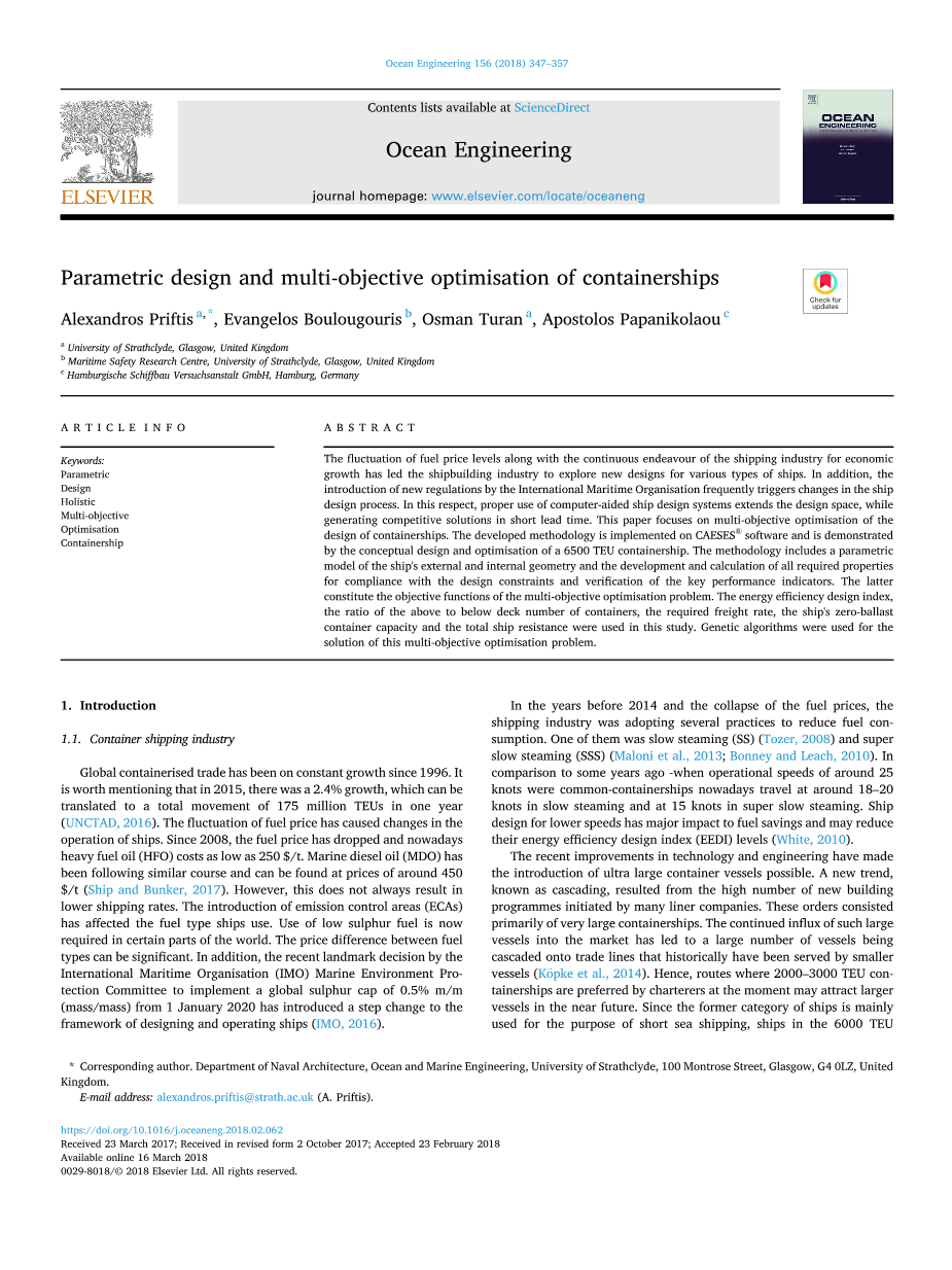 1200箱支线集装箱船主机选型及动装设计外文翻译资料 2021-12-15 21:56:52 英语原文共 26 页 英语原文共 11 页资料编号:[5184] 原文和译文剩余内容已隐藏,您需要先支付 30元 才能查看原文和译文全部内容!立即支付 发小红书推广免费获取该资料资格。点击链接进入获取推广文案即可: Ai一键组稿 | 降AI率 | 降重复率 | 论文一键排版 PREVIOUS NEXT 您可能感兴趣的文章 9000吨供油船机舱设备选型与热平衡分析外文翻译资料 沿海高速客船机舱设备选型及经济性分析外文翻译资料 海.上溢油应急技术外文翻译资料 可变压缩比柴油发动机的效率和生态特征外文翻译资料 高速船 第4部分 船舶系统和设备外文翻译资料 14平衡常数 外文翻译资料 敞水中空化螺旋桨和喷嘴式全 回转推进器的CFD研究外文翻译资料 生物燃料及其二元(柴油-生物柴油)和三元(乙醇生物柴 油-柴油)混合燃料在内燃机减排上的作用外文翻译资料 游轮发电厂优化和比较分析外文翻译资料 内燃机最优放热率计算外文翻译资料