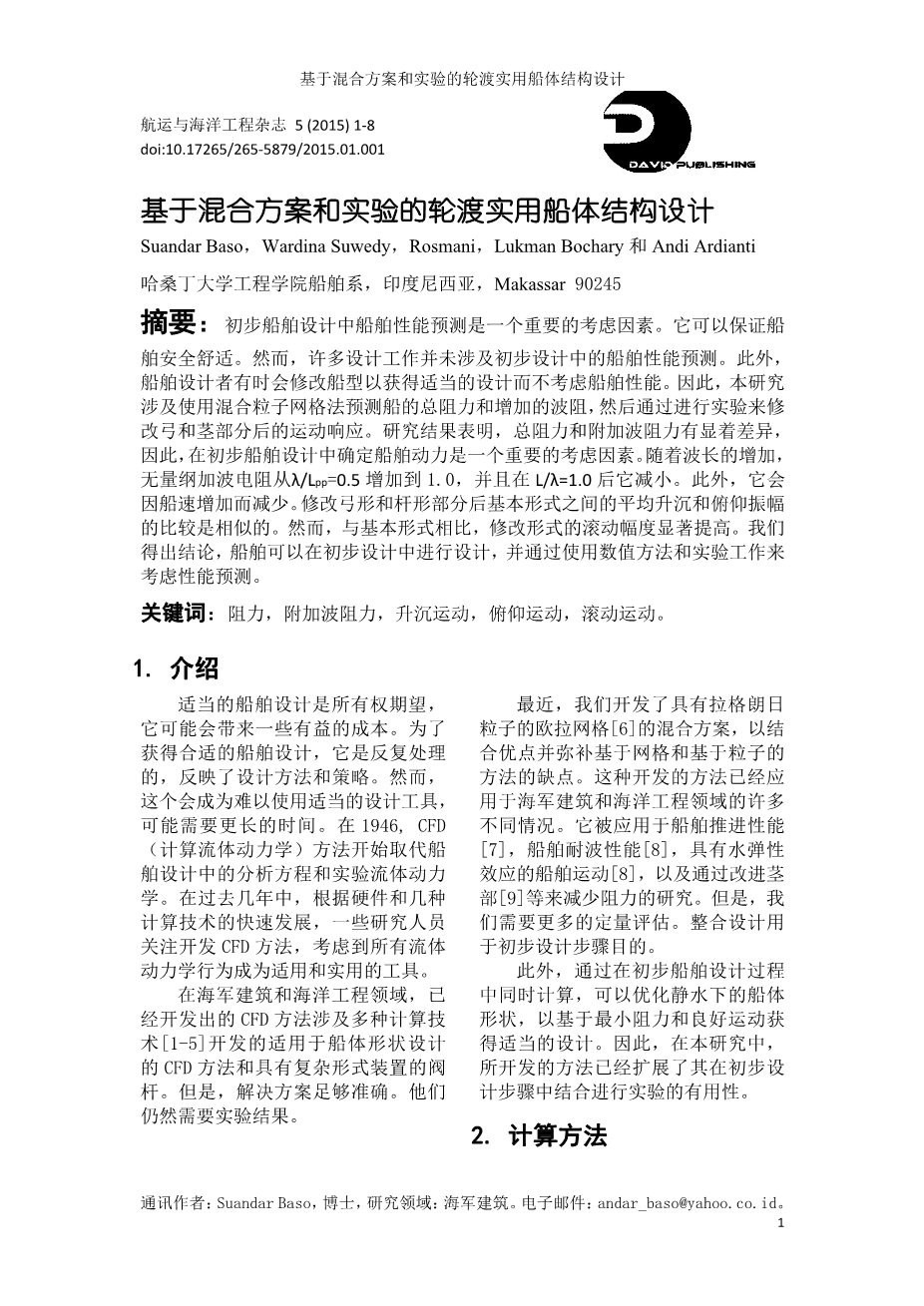 1800箱集装箱船主机选型及动装设计外文翻译资料 2021-12-15 21:58:16 英语原文共 7 页 英语原文共 8 页资料编号:[5174] 原文和译文剩余内容已隐藏,您需要先支付 30元 才能查看原文和译文全部内容!立即支付 发小红书推广免费获取该资料资格。点击链接进入获取推广文案即可: Ai一键组稿 | 降AI率 | 降重复率 | 论文一键排版 PREVIOUS NEXT 您可能感兴趣的文章 9000吨供油船机舱设备选型与热平衡分析外文翻译资料 沿海高速客船机舱设备选型及经济性分析外文翻译资料 海.上溢油应急技术外文翻译资料 可变压缩比柴油发动机的效率和生态特征外文翻译资料 高速船 第4部分 船舶系统和设备外文翻译资料 14平衡常数 外文翻译资料 敞水中空化螺旋桨和喷嘴式全 回转推进器的CFD研究外文翻译资料 生物燃料及其二元(柴油-生物柴油)和三元(乙醇生物柴 油-柴油)混合燃料在内燃机减排上的作用外文翻译资料 游轮发电厂优化和比较分析外文翻译资料 内燃机最优放热率计算外文翻译资料