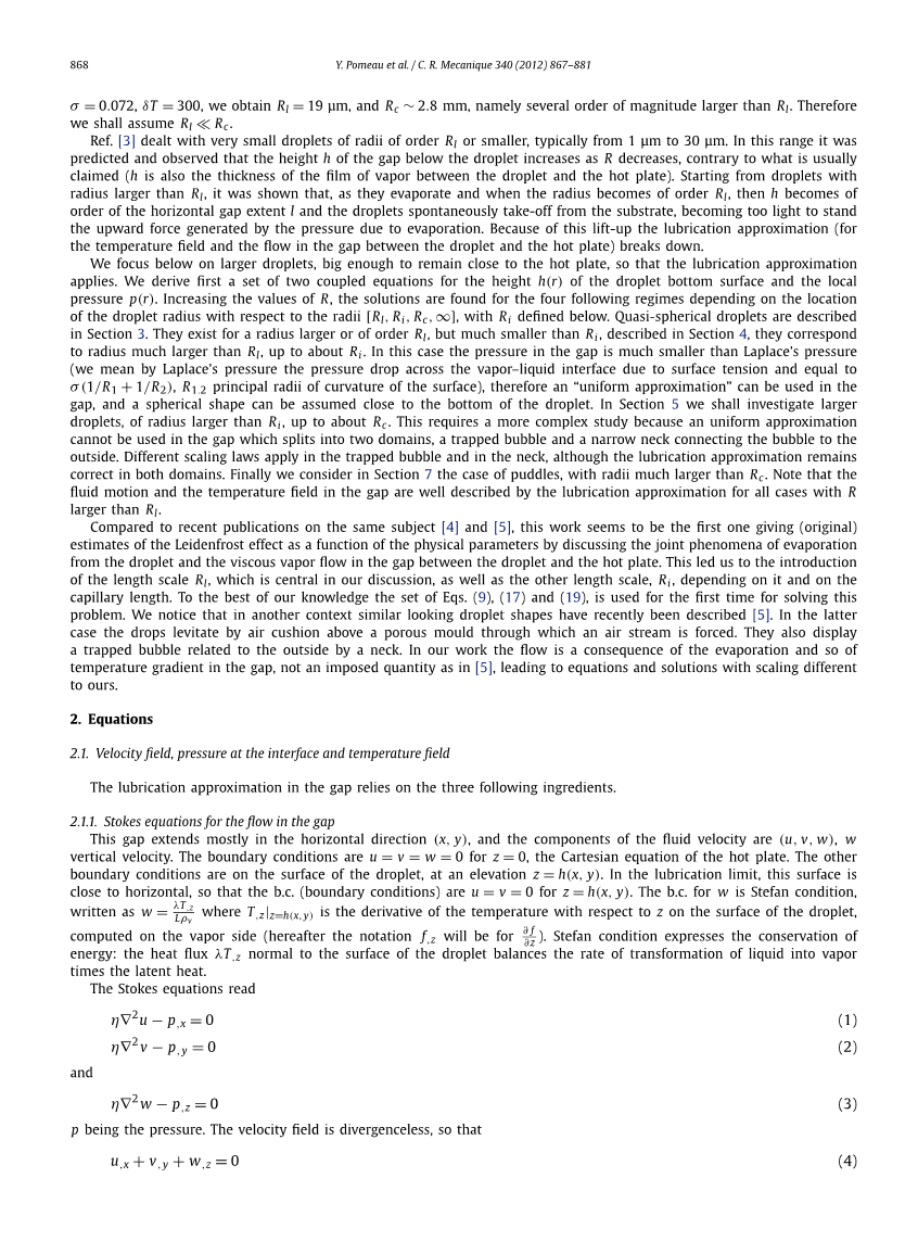 作为,和。对于准球形液滴,这个选择很容易从液滴的重量与压力产生的向上的力得到。我们也会看到,它也适用于扰动表面的描述(半径小于的水滴)另一种尺度将用于描述形成的莱顿弗罗斯特水坑,见第7节。